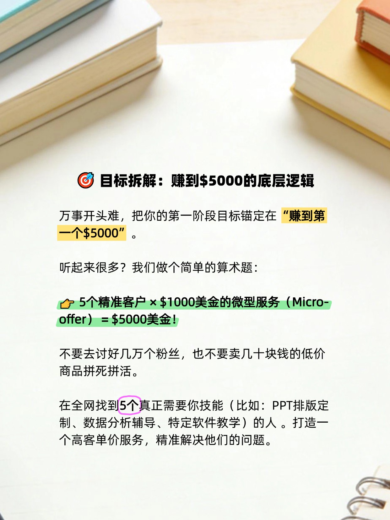 新手千万不要盲目追求几万粉,你的第一个目标应该是在全网找到5个愿意为你支付$1000的人!