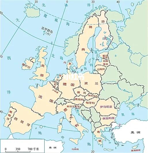 [二R]关于欧洲:欧洲西部面积约500万千米2,包括30多个国家。纬度位于40°N—66°34'N ;大部分为温带气候; 欧洲全部位于北半球,大部分位于东半球。