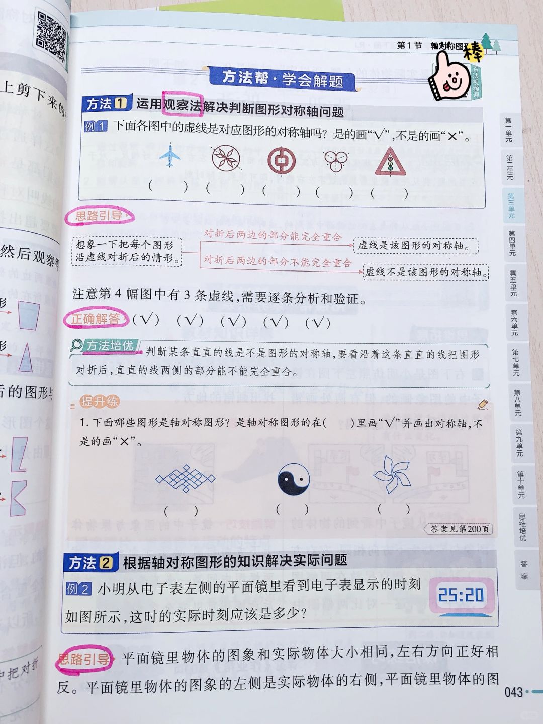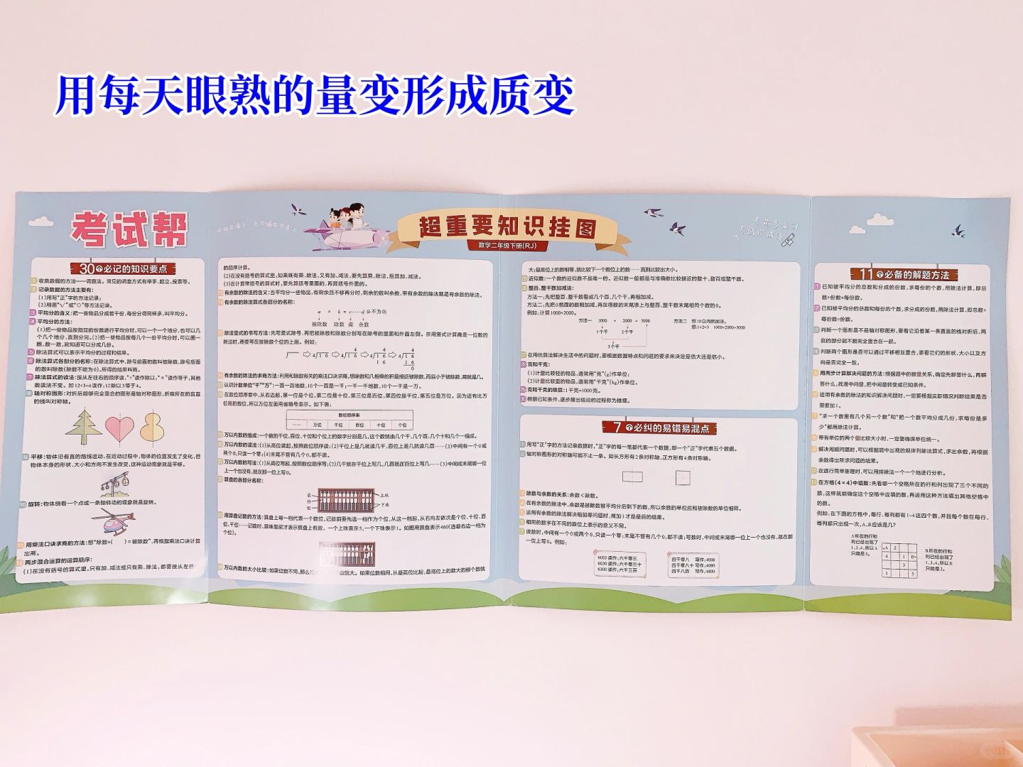 🍀数学要做到步步稳扎稳打,不走弯路,秘诀远在天边近在眼前,就藏在课本中。 啃烂数学书>刷题,今天整理了一份关于“数学基础部分”的学习方法,分享给大家供参考! 学好数学,教材解读类的教辅必不可少,本着打基础,把教材吃透的原则,我入了数学《教材帮》 这本书最吸引我的是“三大帮”: ✅教材帮·知识全解: ……同步课本内容,对知识点一一罗列进行全面细致的解读,同时漫画助解、要点提示、方法提示,多管齐下,让孩子更容易理解。每个知识点后面还有归纳总结、巩固练,对于预习来讲,这种形式有利于提前抓住课程核心,掌握知识脉络。 ……最棒的是将易错点、疑难点单独列出来,演算、讲解,并给出了规避策略。 ✅方法帮·学会解题: ……将具有代表性的题目进行解析,通过思路引导—正确解答的方式,引导孩子总结方法技巧,提升解题能力。 ……最贴心的是“知识全解”和“学会解题”两部分都有专业老师视频讲解,给孩子预习提供全方位的帮助。 ✅拓展帮·素养积累: ……把和本节相关的浅奥题目收纳进来,属于孩子跳一跳够得着的难度。在学好基础的同时让孩子知识拓展、思维延伸。 ✔️另,随书还赠送了一本《课时作业帮》、一本《期末培优练》,里面收纳了强基题能、思维进阶题和必考15题练习,让孩子在课余时间巩固练习,及时查漏补缺,学习更有针对性。 ✔️还有一个很圈粉的就是——《超重要知识挂图》,将一学期的必记知识要点、必纠易错易混点、必备解题方法全部归纳总结,知识清晰、一目了然,方便孩子进行知识盘点,是一张非常不错的学习+复习的好帮手。 如果是预习或者课上知识理解不够透彻,可以着重看一下知识点和重难点,基础打得好,分数不会差 如果上课听懂了不会做题,可以多花时间去抠后面典型的例题,解答思路很清晰。 购买《教材帮》主要是准备寒假好好预习,以我自己使用为主,引导和辅助嘻嘻学习,觉得不错,分享给大家! 🍀重要事情说三遍👇 ……啃烂数学书>刷题❗️❗️❗️ 🌸育儿育己育心,每天学习一点,教娃怎样啃烂数学书,就可以做轻松妈妈啦!