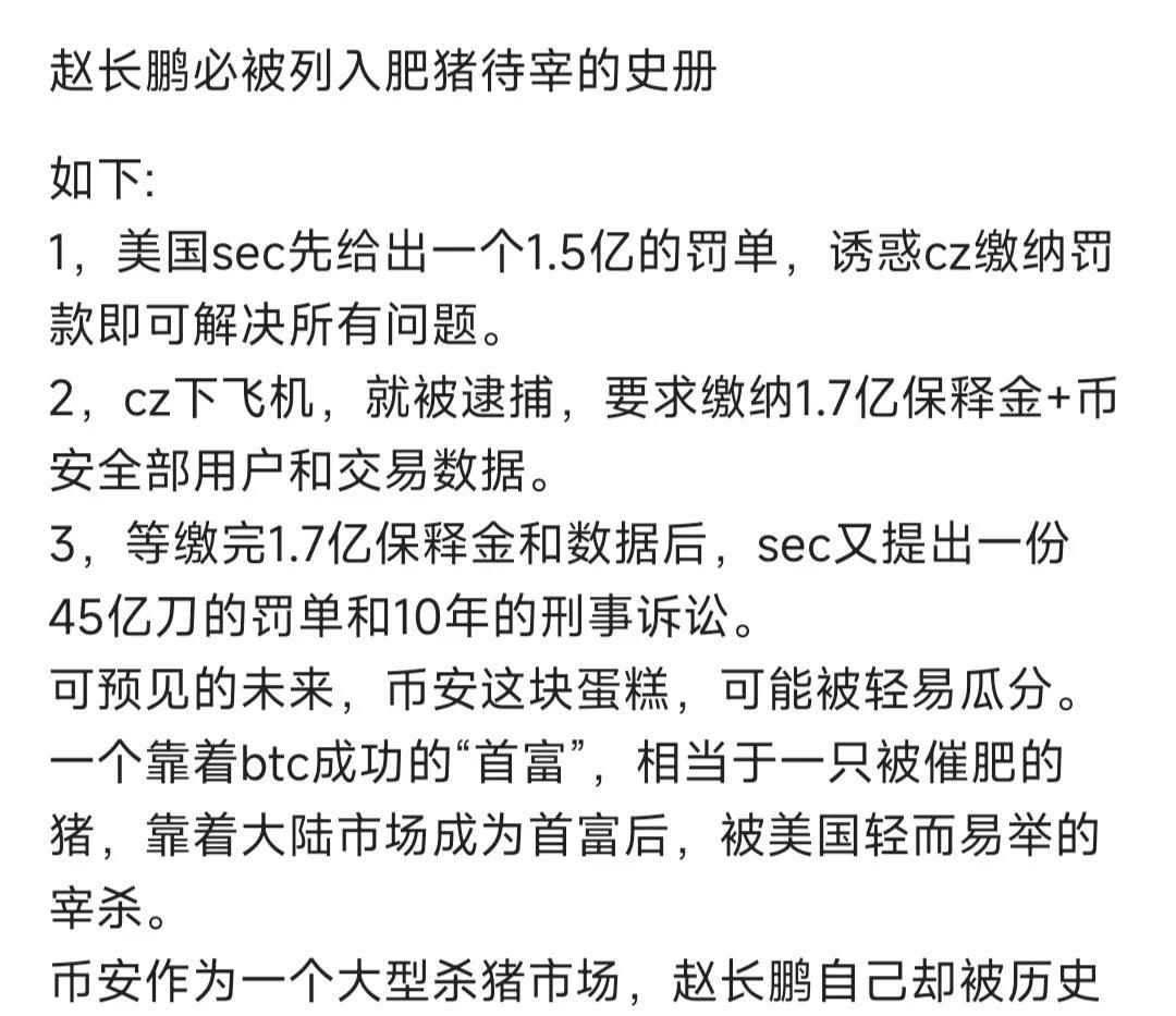 美国这次是真的玩大了,以后富豪们犯了事儿,打死都不敢再回到美国了,赵长鹏的例子已经给所有的富豪敲响了警钟。这连环套下的,一环接一环,一环比一环重,赵长鹏这一次不但财富被美国没收,而且还要面临长达10年的牢狱之灾。可惜的这个人想方设法割中国b圈人的韭菜,最后却被美国从根上收割。