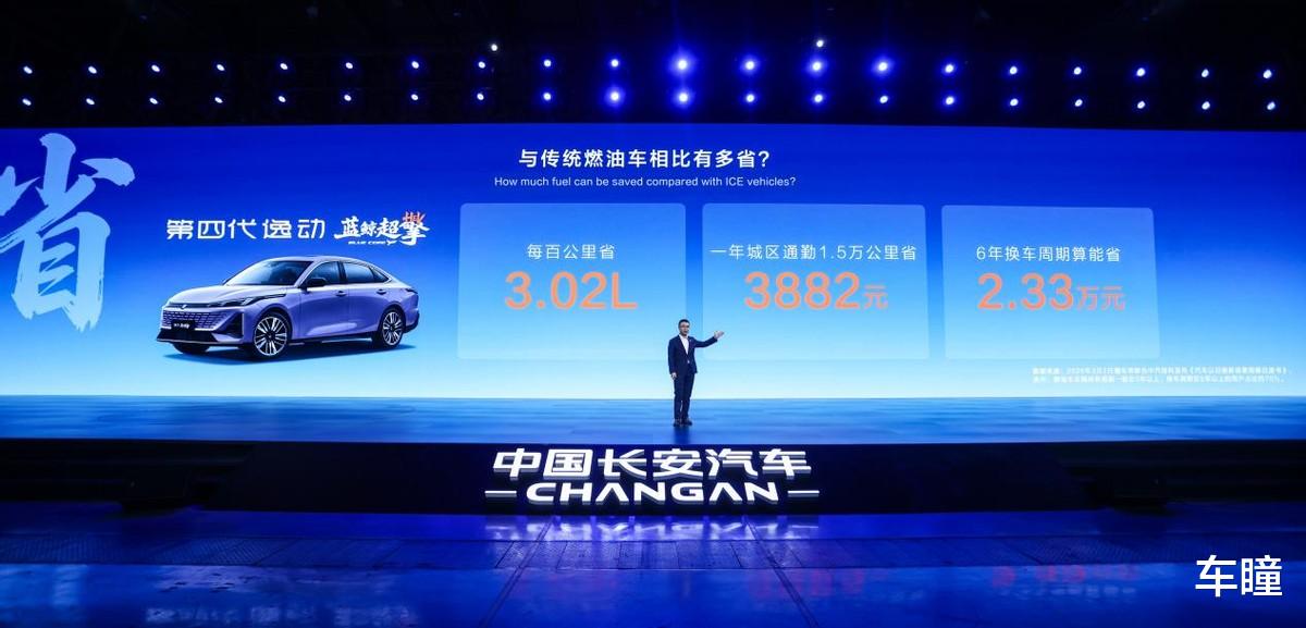 其次用车成本显著降低。在发布会现场,长安汽车执行副总裁杨大勇为消费者算了一笔账:以第四代逸动蓝鲸超擎为例,城区实测百公里综合油耗约2.98升,对比同级传统燃油车6升油耗估算,每百公里能省下3.02升油。按一年跑1.5万公里,一年省油453升,结合92号汽油当前8.57元/升计算,一年就省下3882元。按6年换车周期,光油费就能省下2.33万元。以一台12万的车为例,对比保险费,燃油车比纯电车每年约节省1000元,对比保值率,燃油车比纯电车三年后多卖7200元。