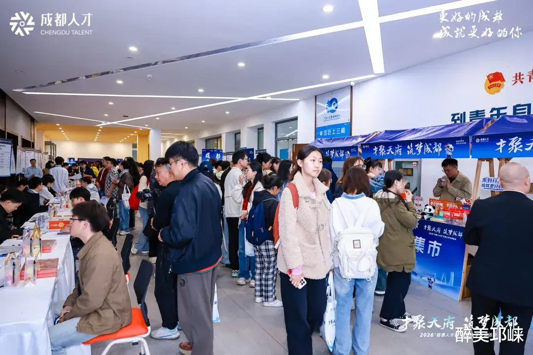 推介会结束后,专场招聘双选会与“蓉漂人才市集”同步开启。37家优质企事业单位携99个优质岗位现场揽才,政策咨询、简历诊断等一站式服务同步开放,为学子提供便捷高效的求职体验。同学们手持简历与企业深入交流,求职氛围热烈。截至目前,活动线上线下累计收到简历7000余份,直播带岗位浏览超12000人次。