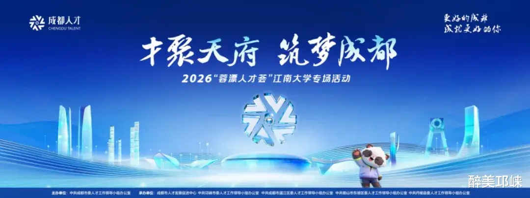 4月12日,由成都市委人才办主办,成都市人才发展促进中心、邛崃市委人才办、温江区委人才办、东坡区委人才办、丹棱县委人才办共同承办的“才聚天府·筑梦成都”——2026“蓉漂人才荟”江南大学专场活动在无锡圆满举行。活动以“更好的成都,成就更好的你”为主题,精准链接江南大学青年人才,搭建校地人才互通、产才融合的坚实平台,校地嘉宾、企业代表与青年学子齐聚一堂,共话发展、共赴未来。
