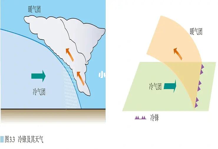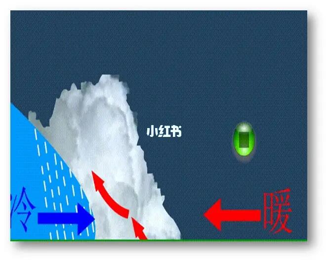 1⃣关于冷锋:冷锋是冷气团主动向暖气团移动的锋。冷气团的前缘插入暖气团下面,使暖气团被迫抬升,暖气团在抬升过程中冷却,其中水汽容易凝结成云和雨