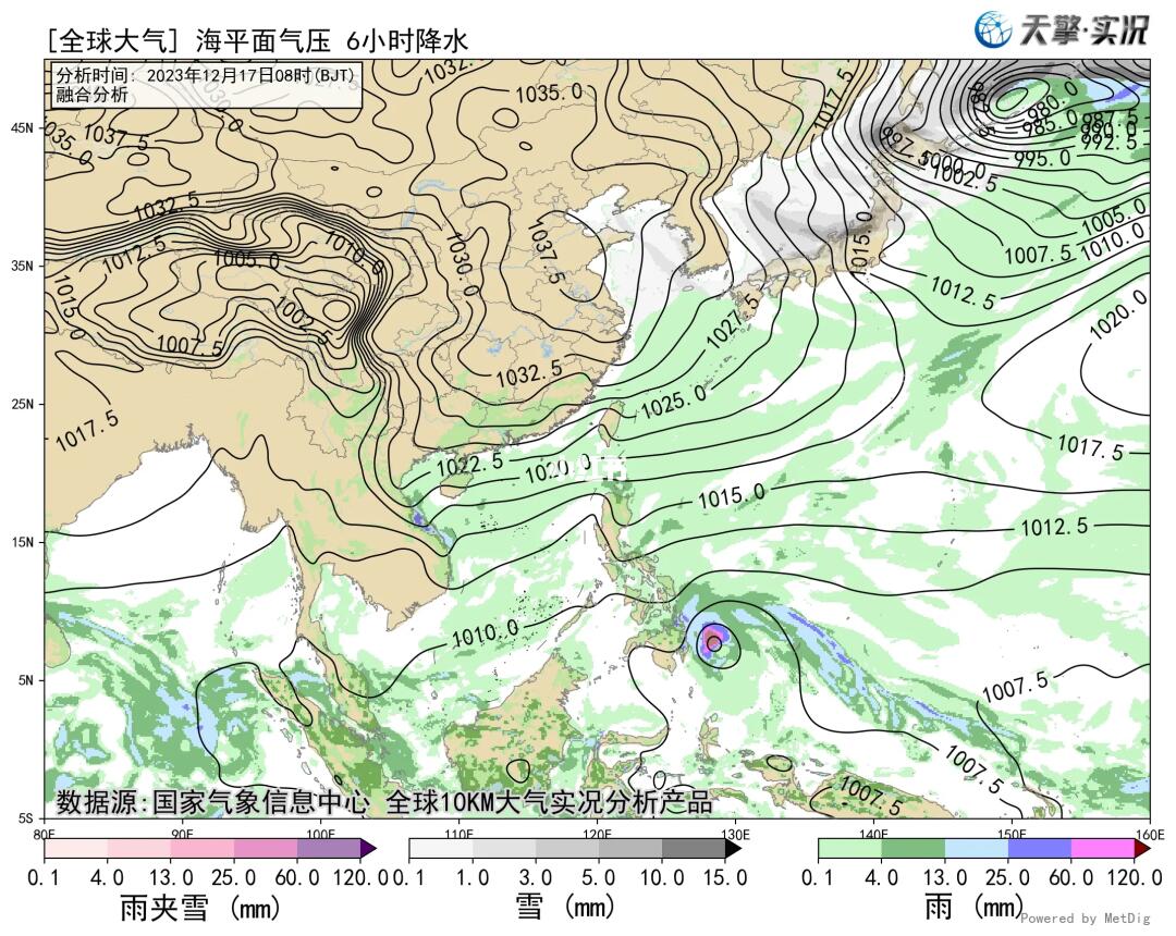 [二R]冷锋过境时,常出现较大的风,云层增厚,并出现雨、雪天气。(现阶段的华南地区)