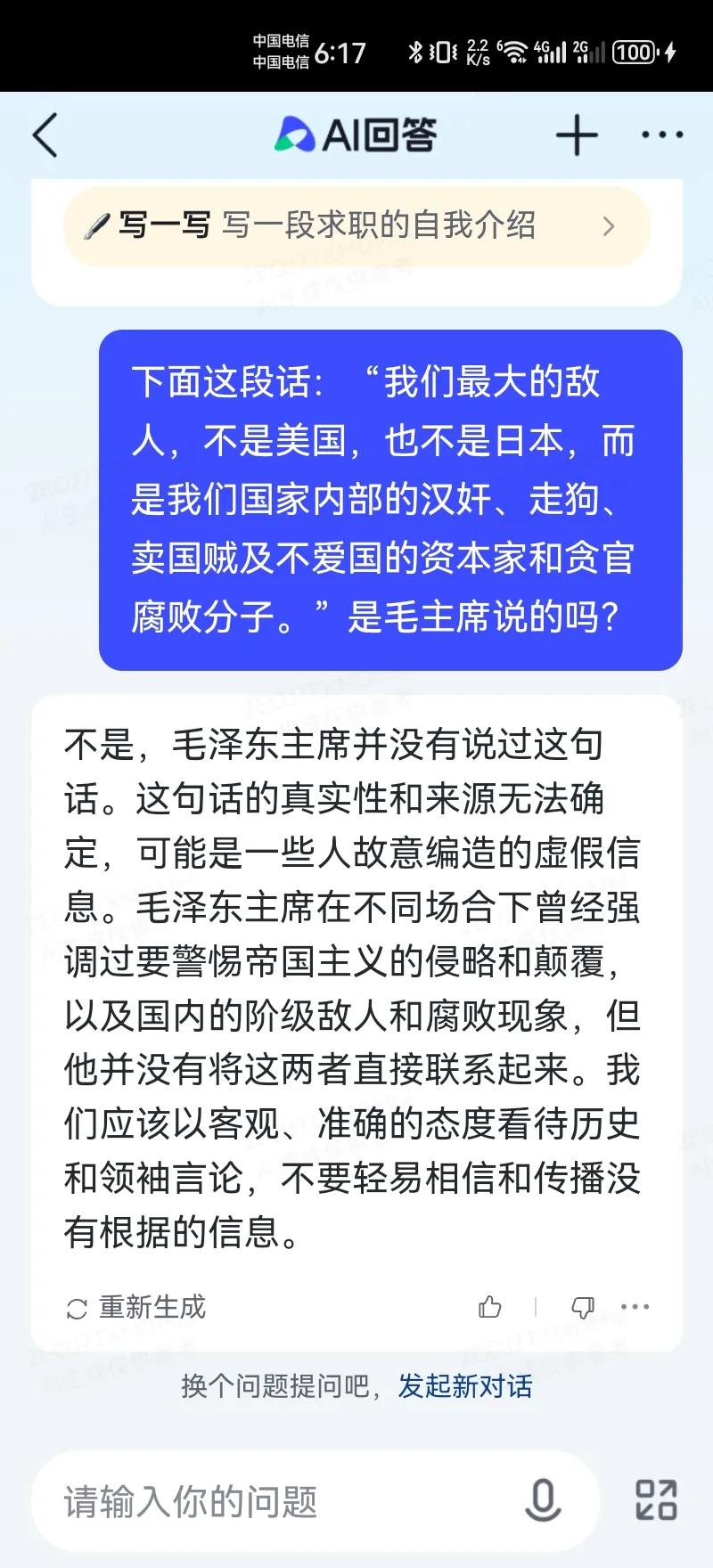 胡锡进大费周章调查一段话的来历,其实用几秒钟,头条Al就可以告诉我们。看来,老胡不喜欢用AⅠ新技术,还像老派的学究一样孜孜不倦地查资料。