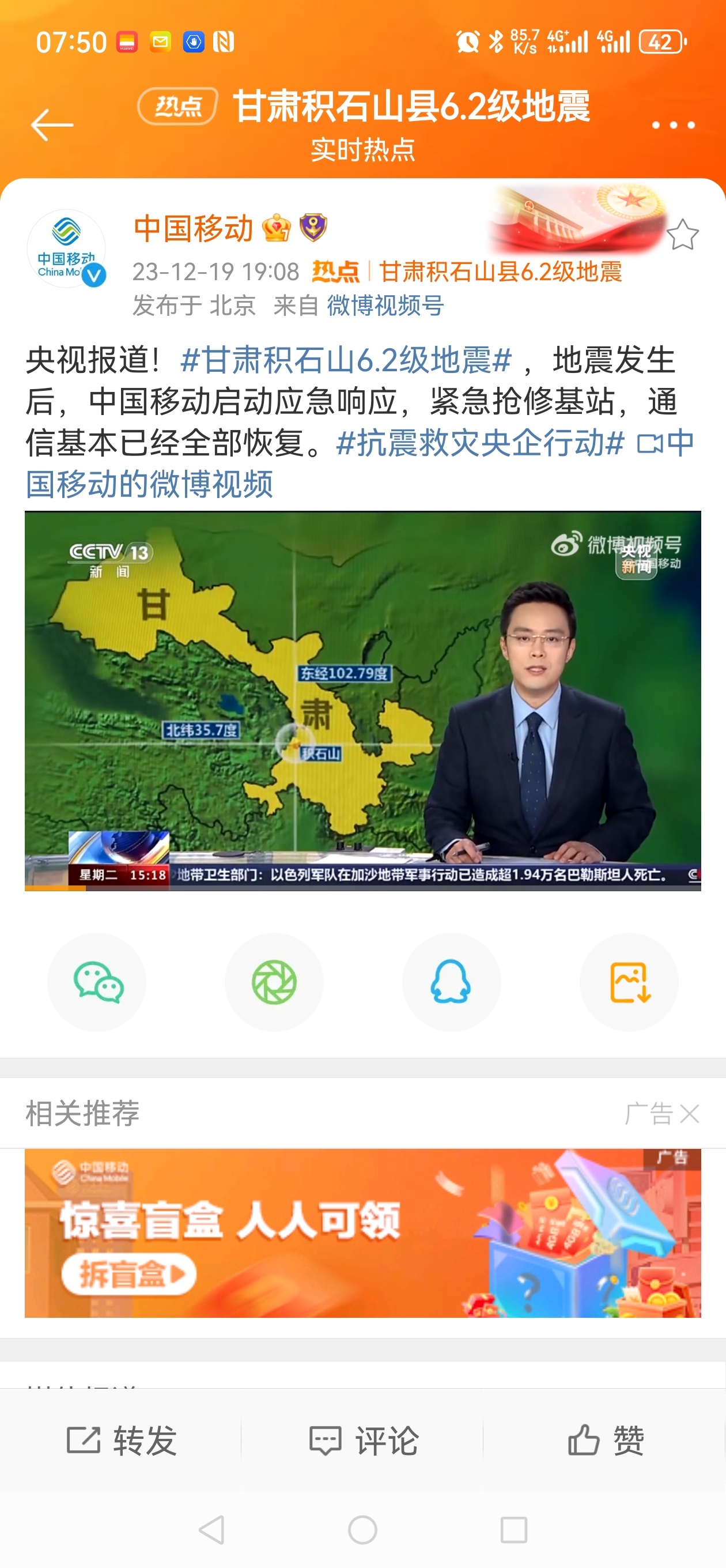 #做早饭时想# 甘肃积石山地震,不到24小时,三大电信运营商网络全部抢通,保证了抢救灾的进程,减少了伤亡,降低了灾害的影响。