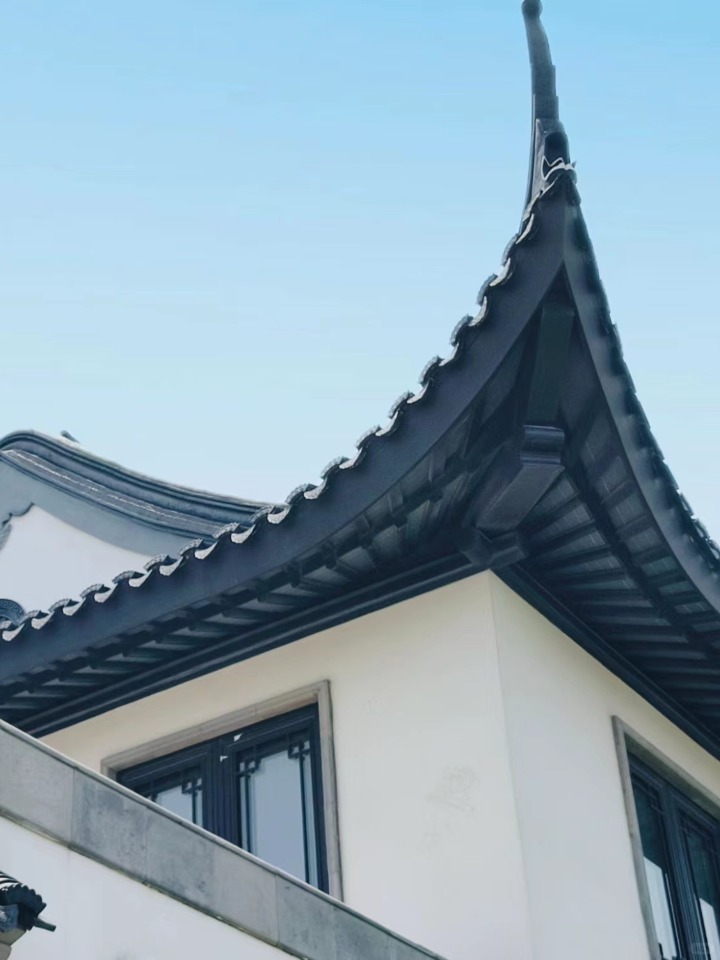 他所描绘的这种建筑形制,常见于中国建筑中,称为飞檐戗角,其结构,有着不同的做法,线条弧度也各有姿色,但都构筑出江南特有的飘逸轻盈之美。