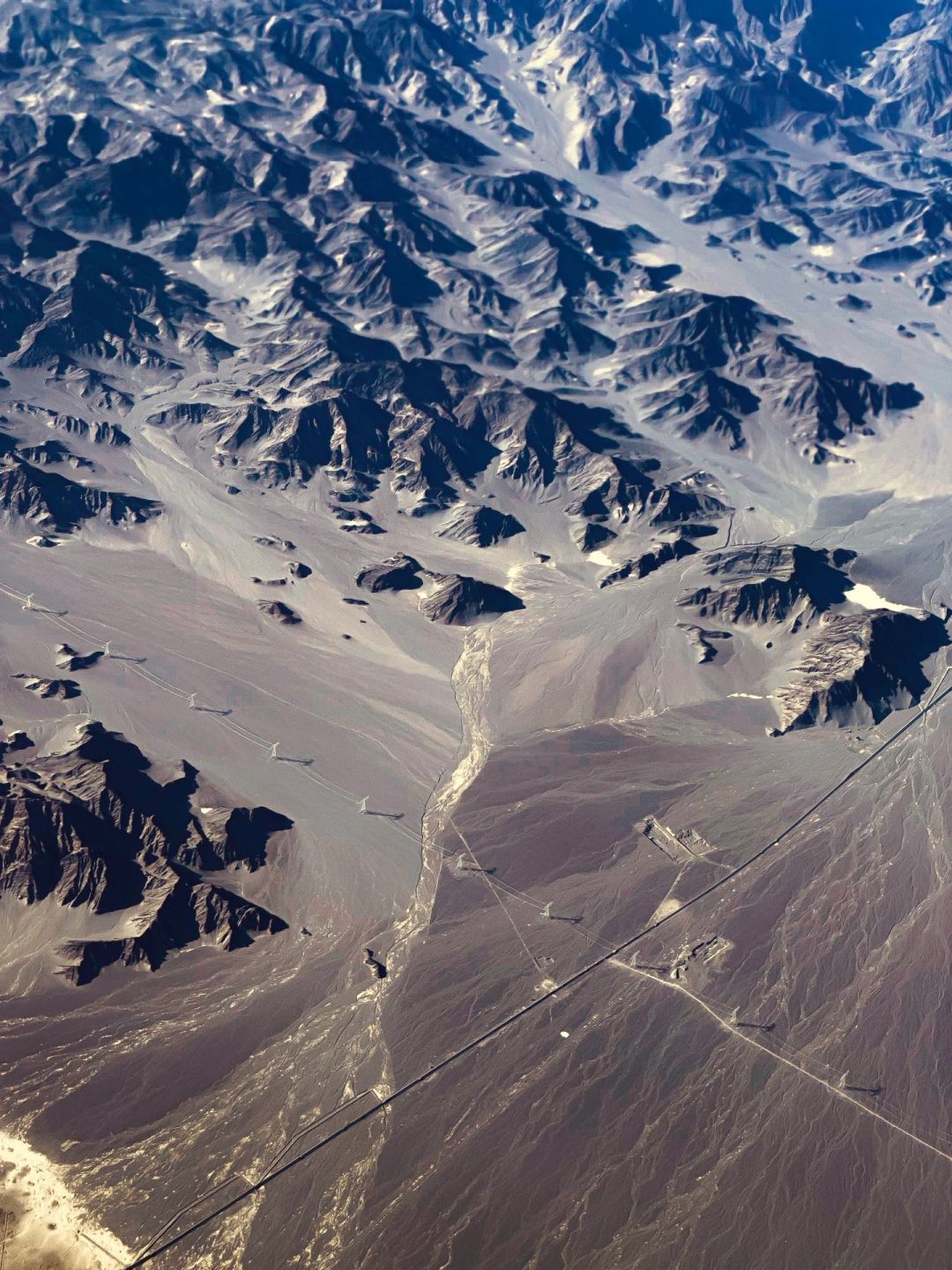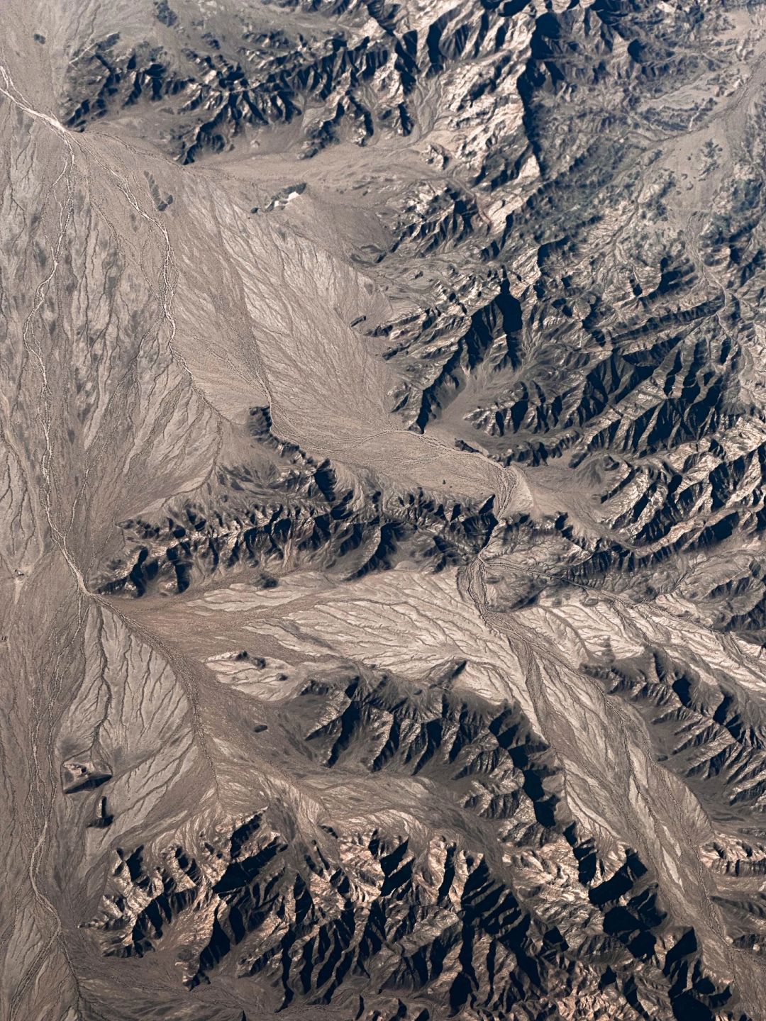 飞新疆的航班千万别睡觉 从北京飞乌鲁木齐的航班全程都在从舷窗向外张望,被外面的景色惊掉下巴,一共拍了差不多400张照片。 就好像荒蛮星球上刚努力出现了一点点人工的痕迹,感叹这些人工设施即渺小又和大自然一样伟大