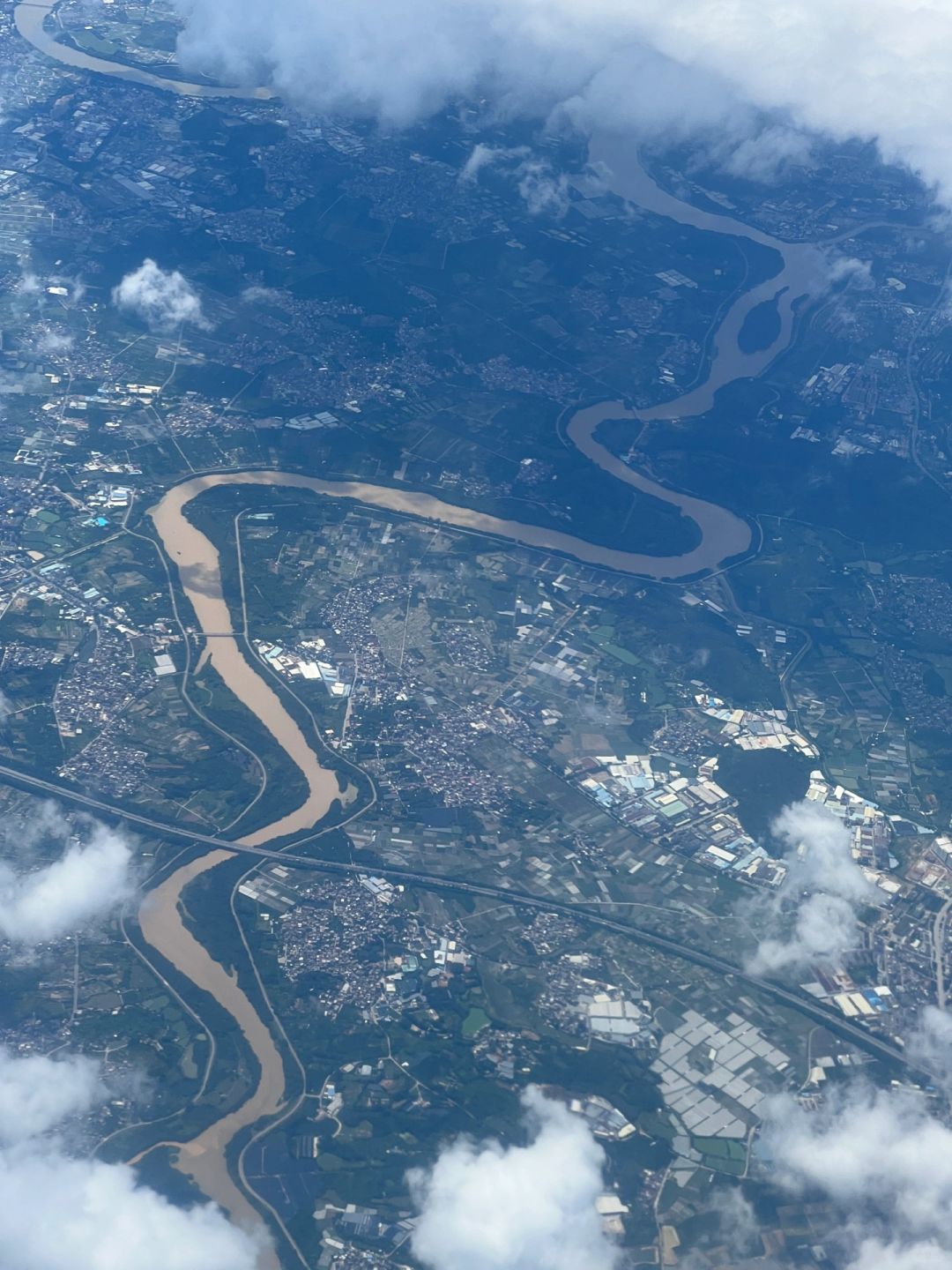 飞机上拍到奇奇怪怪的河流 深圳✈️西安 图1️⃣深圳前海 图2️⃣东莞上空的珠江