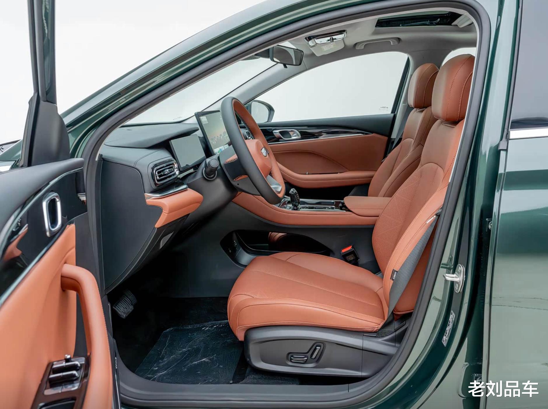 坐进车内,第5代帝豪前排内饰软包面积不算小,环抱式座舱,也让它在十万元以下的同级车中显得比较有质感,看着档次感十足。仪表盘是10.2英寸,除了入门版,就是全液晶屏幕。方向盘不再提供塑料材质,而是全系皮质包裹。中控台布局层次分明,空调出风口采用回字形搭配镀铬装饰设计,特别精致。座椅材质全系都是仿皮打孔,舒适度不错。1.5T DCT旗舰型还有主驾电动调节和前排加热功能。储物空间多处实用,门板槽、中控杯架都够用。