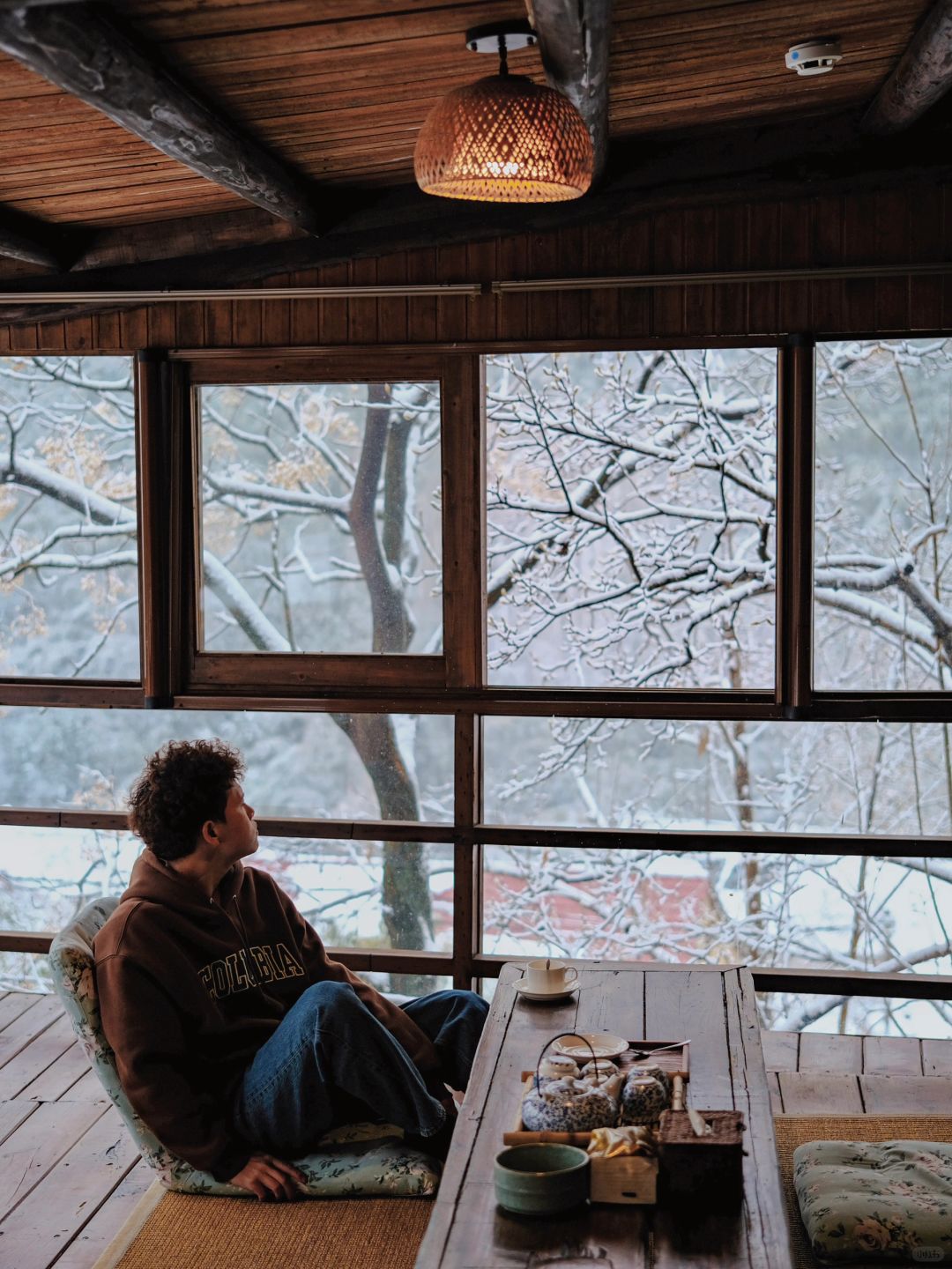 躺在观景浴缸里 能将后坞山景尽收眼底