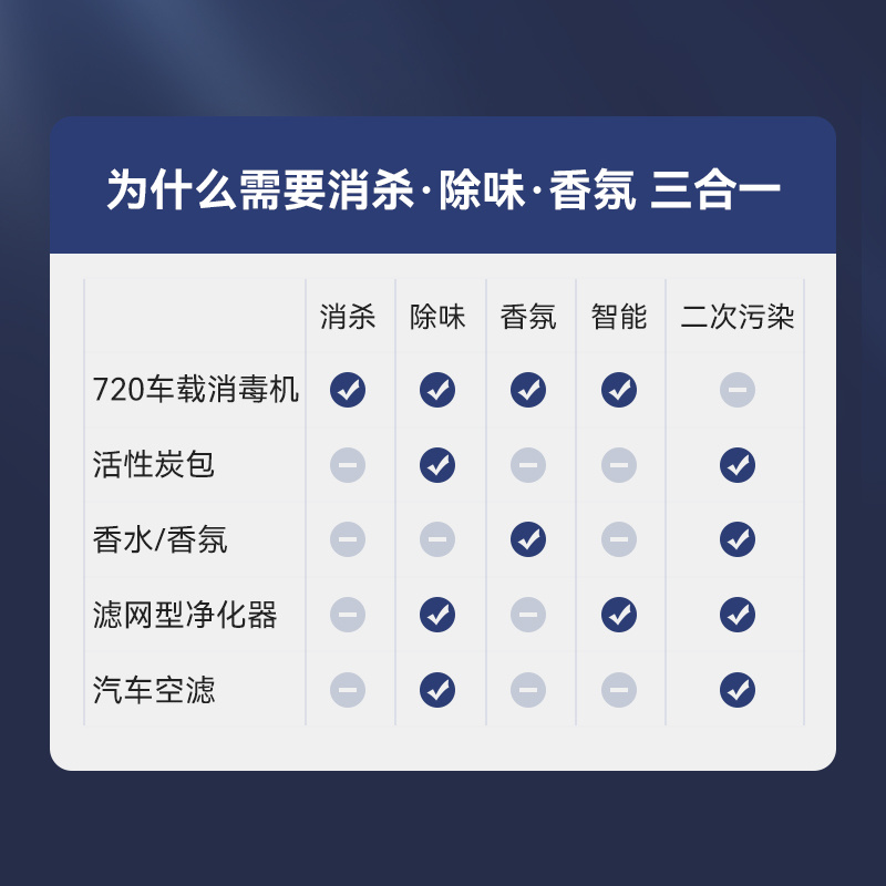 720车载香氛消毒机就是看到了这样一个痛点,采用等离子消毒、超氧消毒、UVC消毒,还提供精心调制的香氛,消除车中异味,消毒、去除车内甲醛。多个第三方机构检测,多种病毒杀灭达到99.99%,获得卫健委审核备案。智能感应能力,保证了病毒消杀更安全。