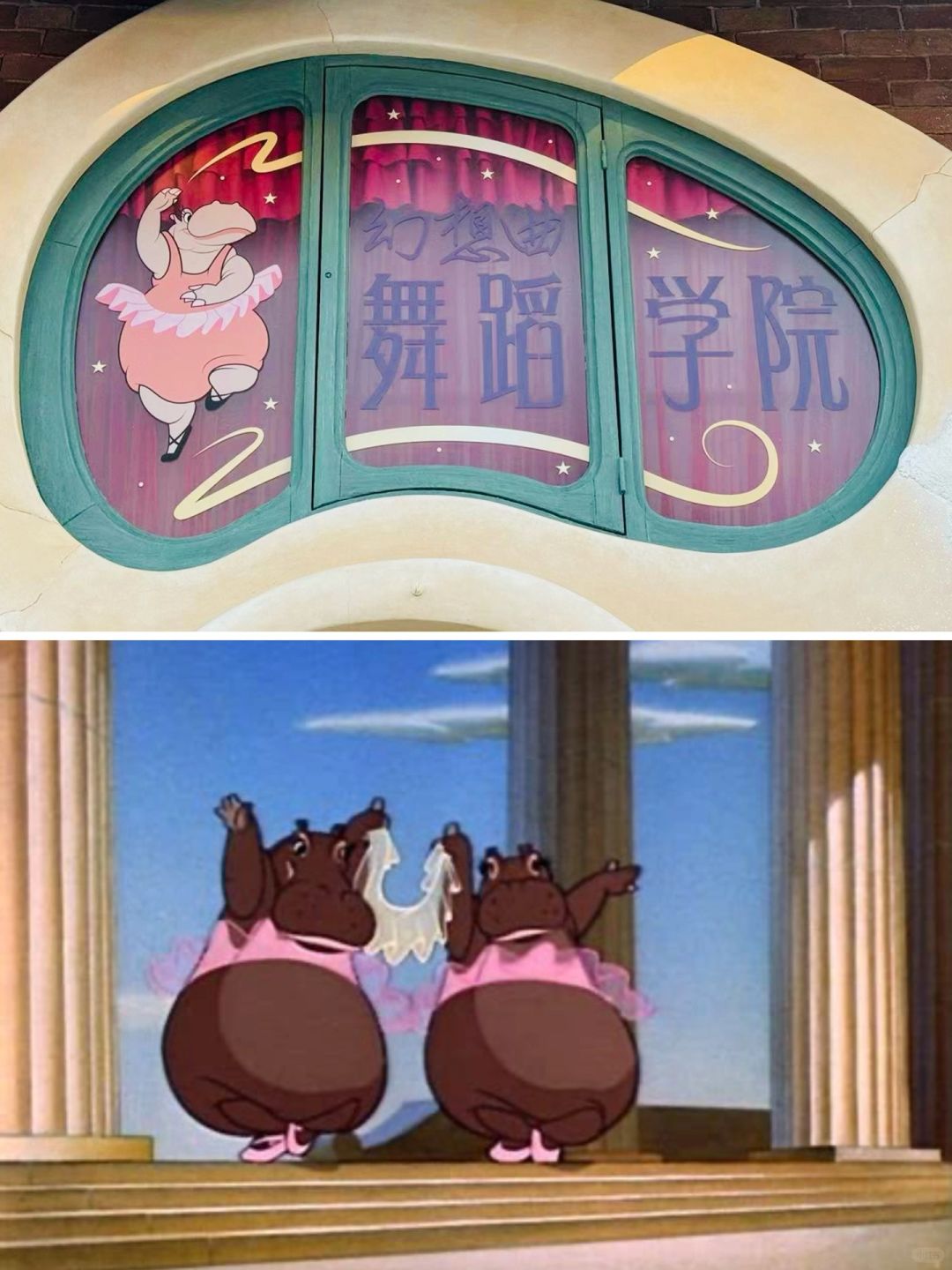 幻想曲舞蹈学院的窗 致敬了迪士尼1940年的动画幻想曲Fantasia 中的跳芭蕾的河马(Hippo Dance)