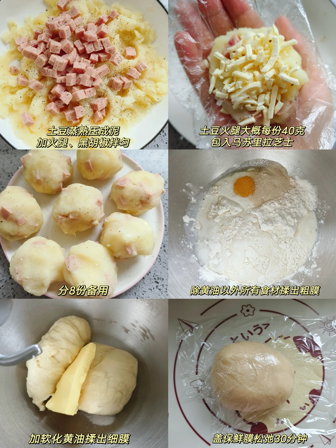 [彩虹R]馅料:土豆300克,火腿丁适量,盐、黑胡椒适量,马苏里拉芝士适量