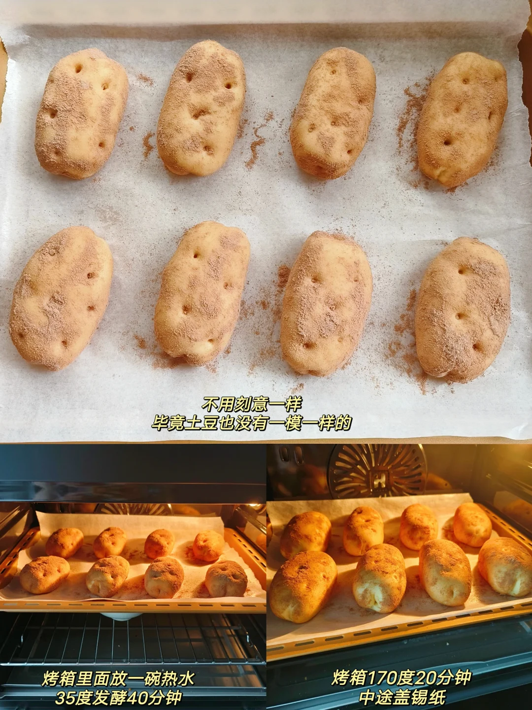 [四R]土豆面包胚放入烤箱35度发酵40分钟,里面放一碗热水,烤箱上下火170度20分钟,出炉~~