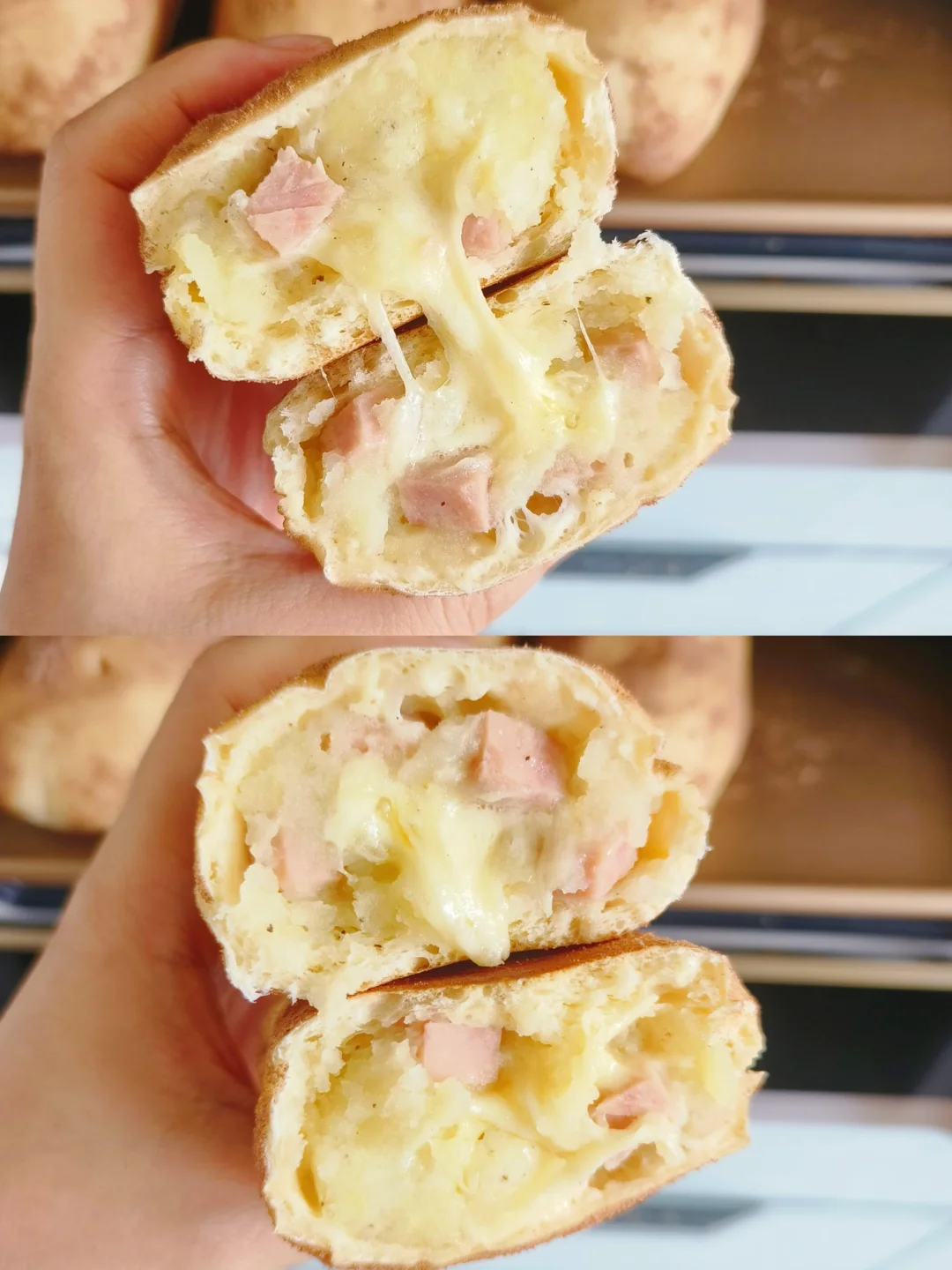 软软面包体,夹着土豆火腿,满满的拉丝