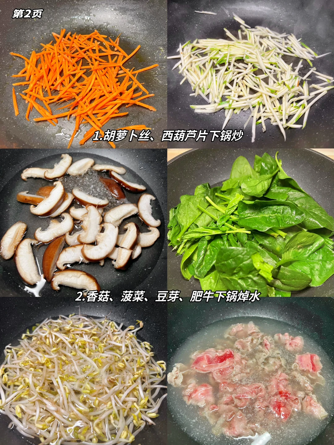 2、香菇、菠菜、豆芽、肥牛下锅焯水 🍄🥬