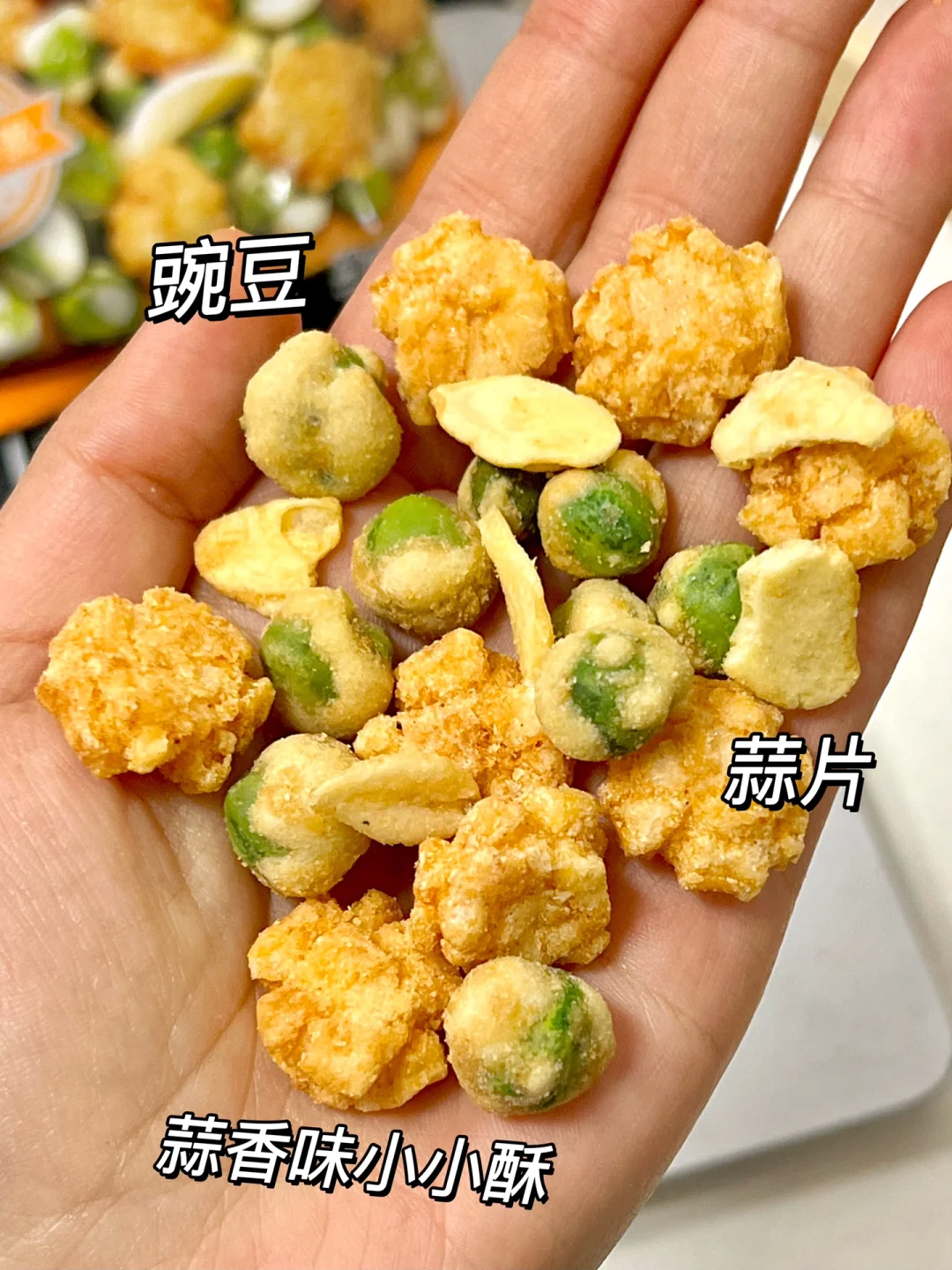 蒜片+蒜香小小酥+豌豆!开袋就是浓浓的蒜香味~