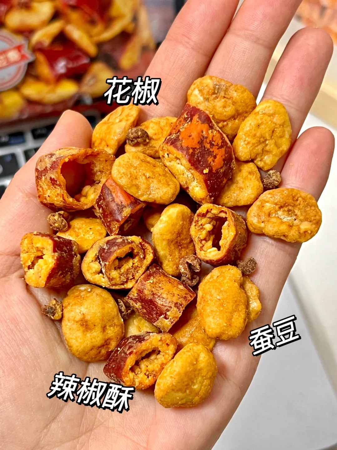 里面的辣椒酥裹满了芝麻 别提多香了~蚕豆脆脆的