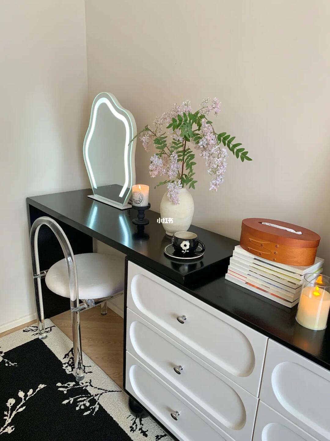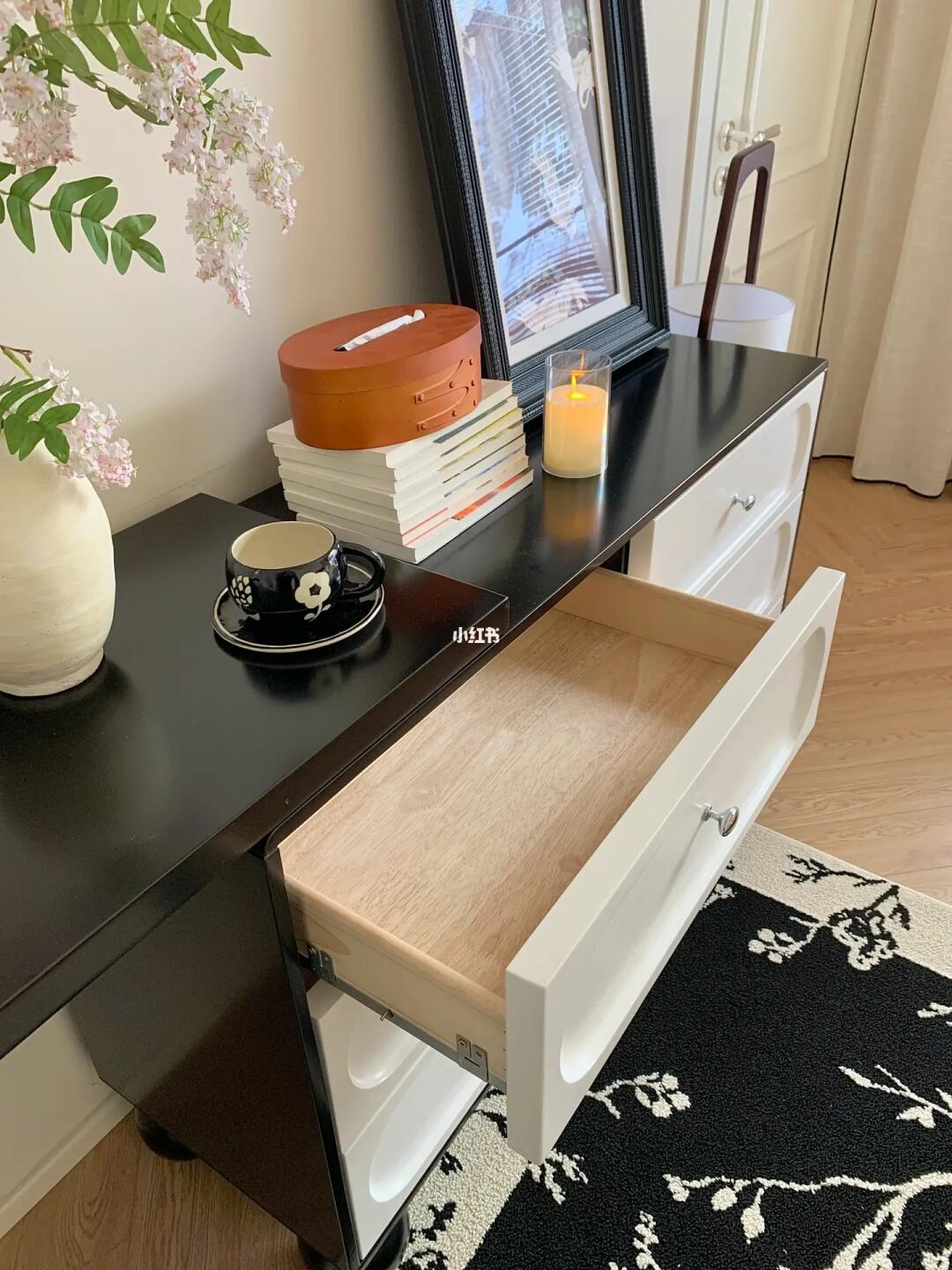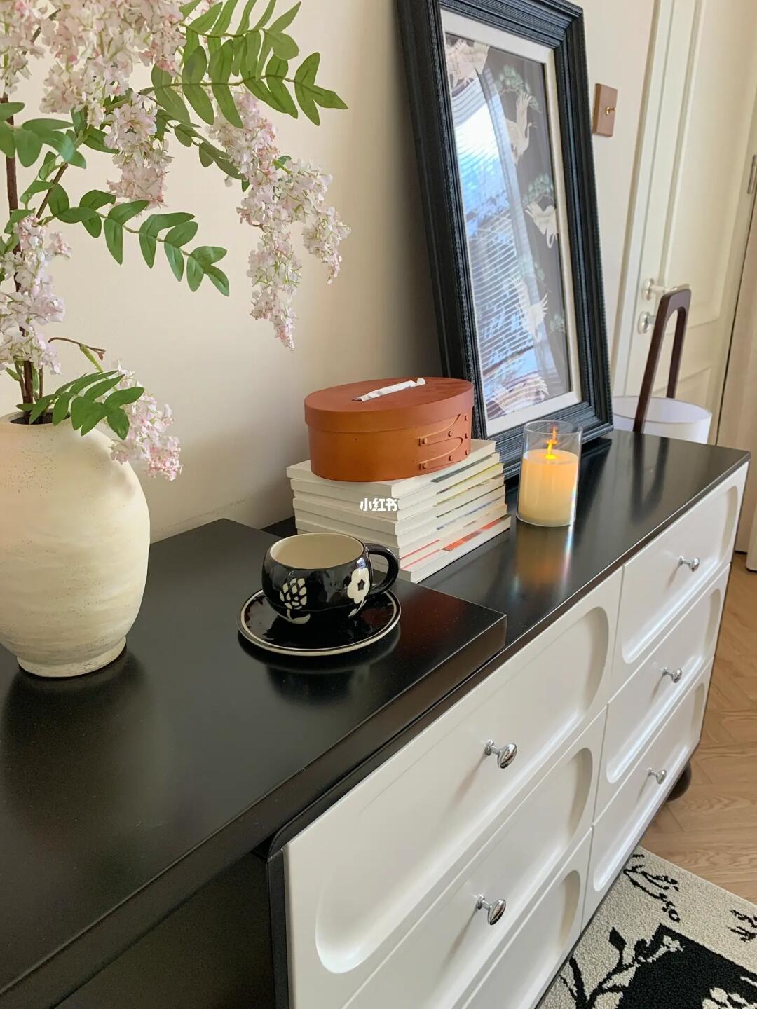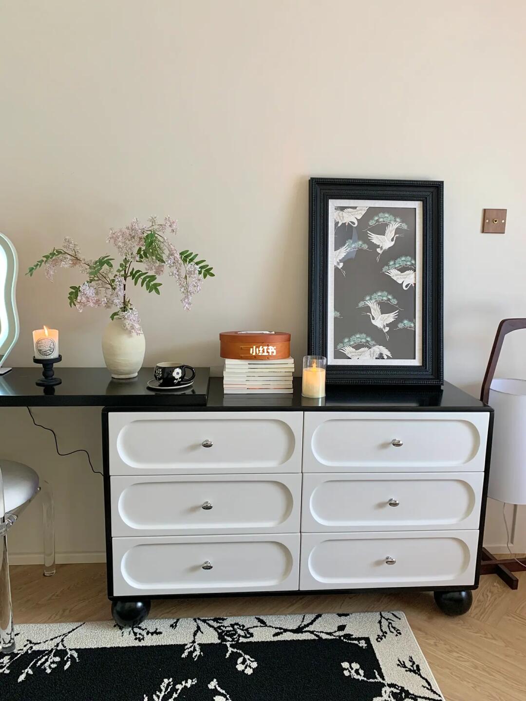 卧室面积12平方,做了一门到顶的柜子 又放了1.8米的大床 床尾空间所剩无几 想要收纳空间又想要符合中古风的高级感 终于找到了这款梦中情柜~ . 黑色系的斗柜梳妆台呼应了房间的色调 柜子是黑白撞色的,自带高级感 六个抽屉自带防撞缓冲功能,收纳空间很足 深度只有40厘米,很适合小卧室 实木烤漆的材质,用起来质感也不错~ . 跟我一样卧室空间小的姐妹可以冲哦~
