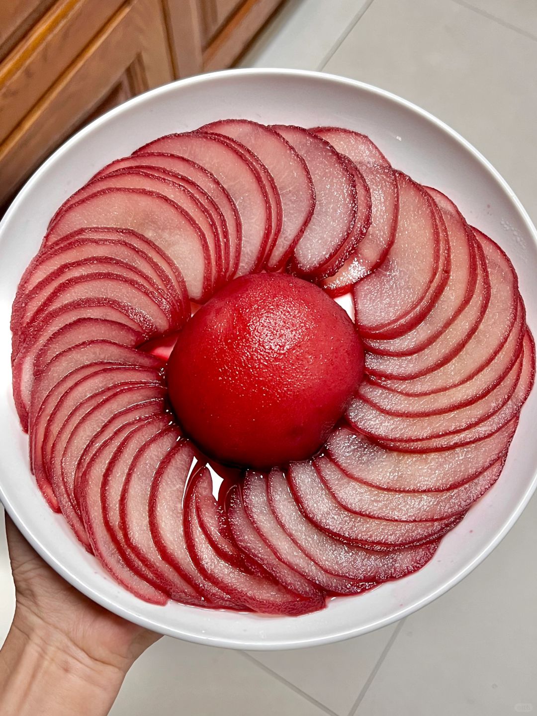 这是谁发明的…真的巨好吃啊啊!! 自制红酒炖雪梨🍐!! 香甜可口~煮的时候满屋飘香 真的一口爆汁!!这个颜色太适合过年吃啦 做法在图上~ 简单好吃去试试!