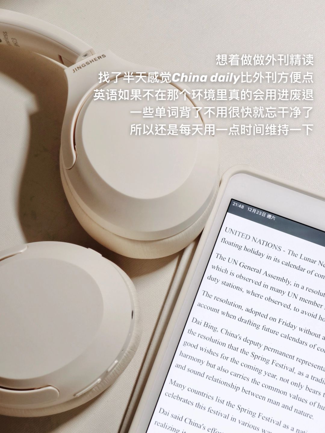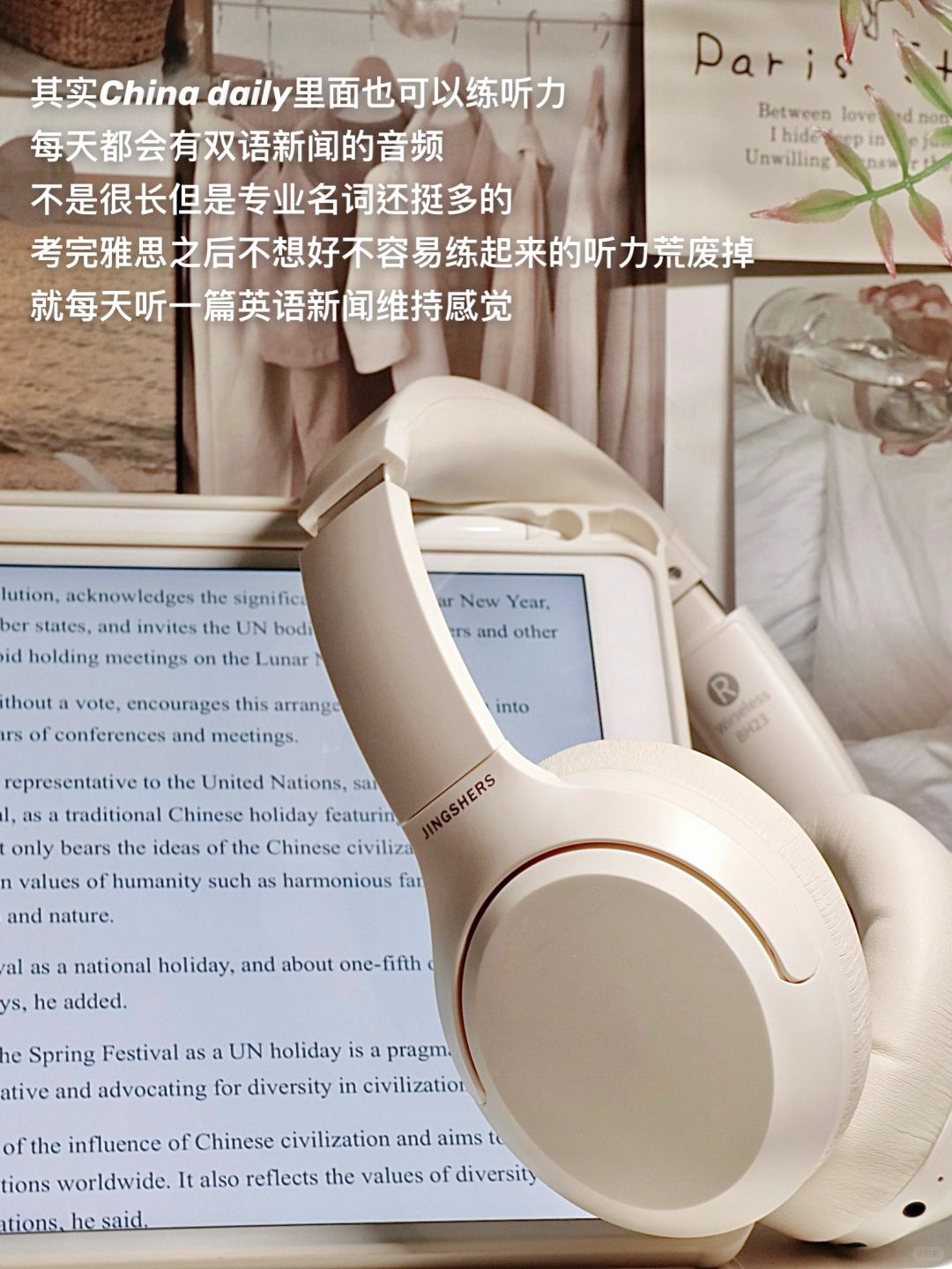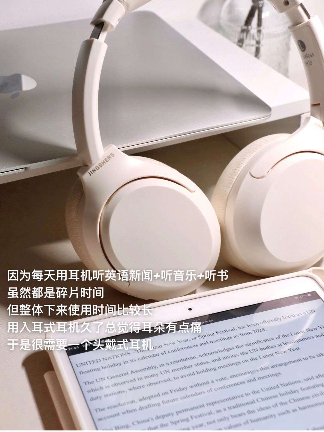 不能出门的日子里入手了新耳机陪我度过,拿到手上就被惊到了,颜值我很喜欢,皮质耳罩捏起来就软软的,戴上真的很舒服,用来听China daily、听书、看电影时,周围的噪音我都听不到,就算不放音乐,戴在头上也能隔绝外面的杂音,哇哦!让原本就容易暴躁的心瞬间得到了安慰~