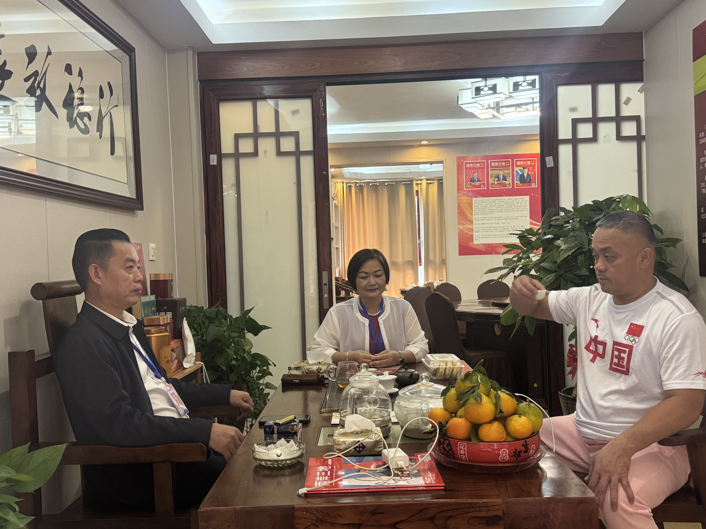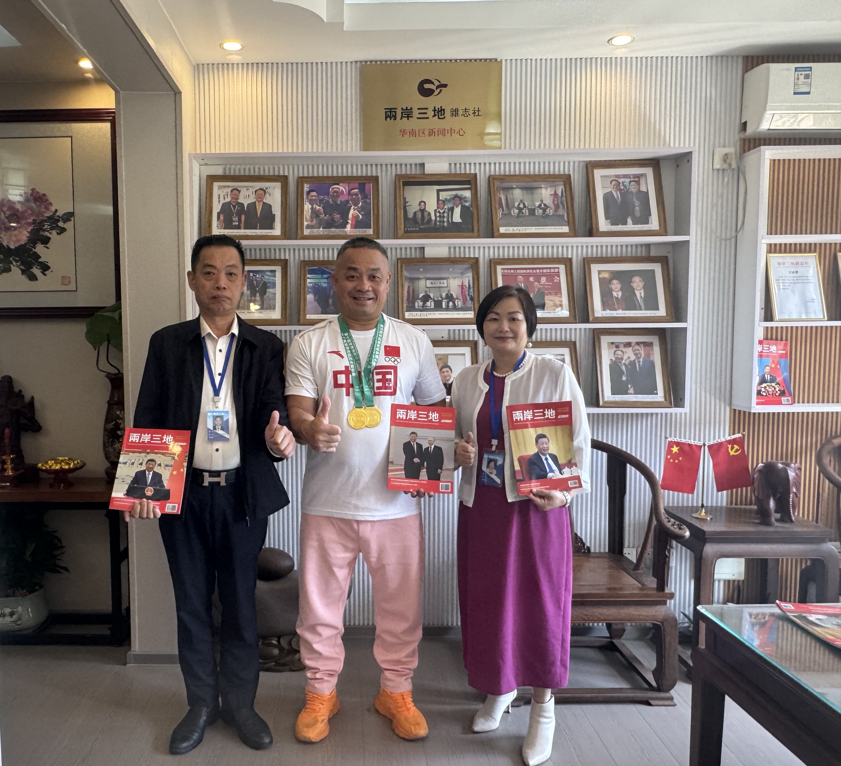 左一:《两岸三地》杂志社投资部主任、华南区新闻中心主任李卫平,中间:红色爱国电影开国上将许世友总导演、世界传统武术锦标赛两项金牌黄巨龙,右一:华南区新闻中心常务副主任蔡少明