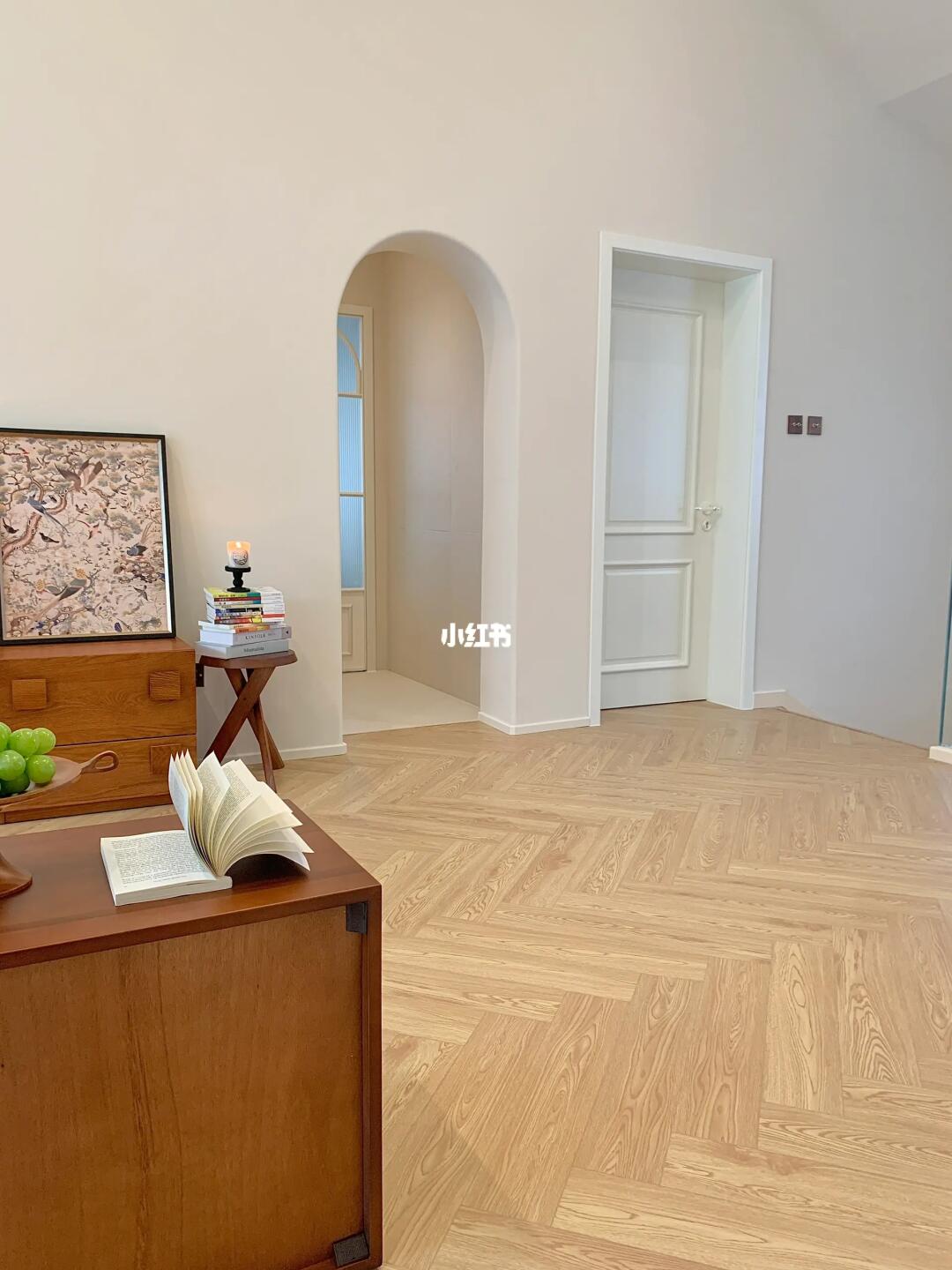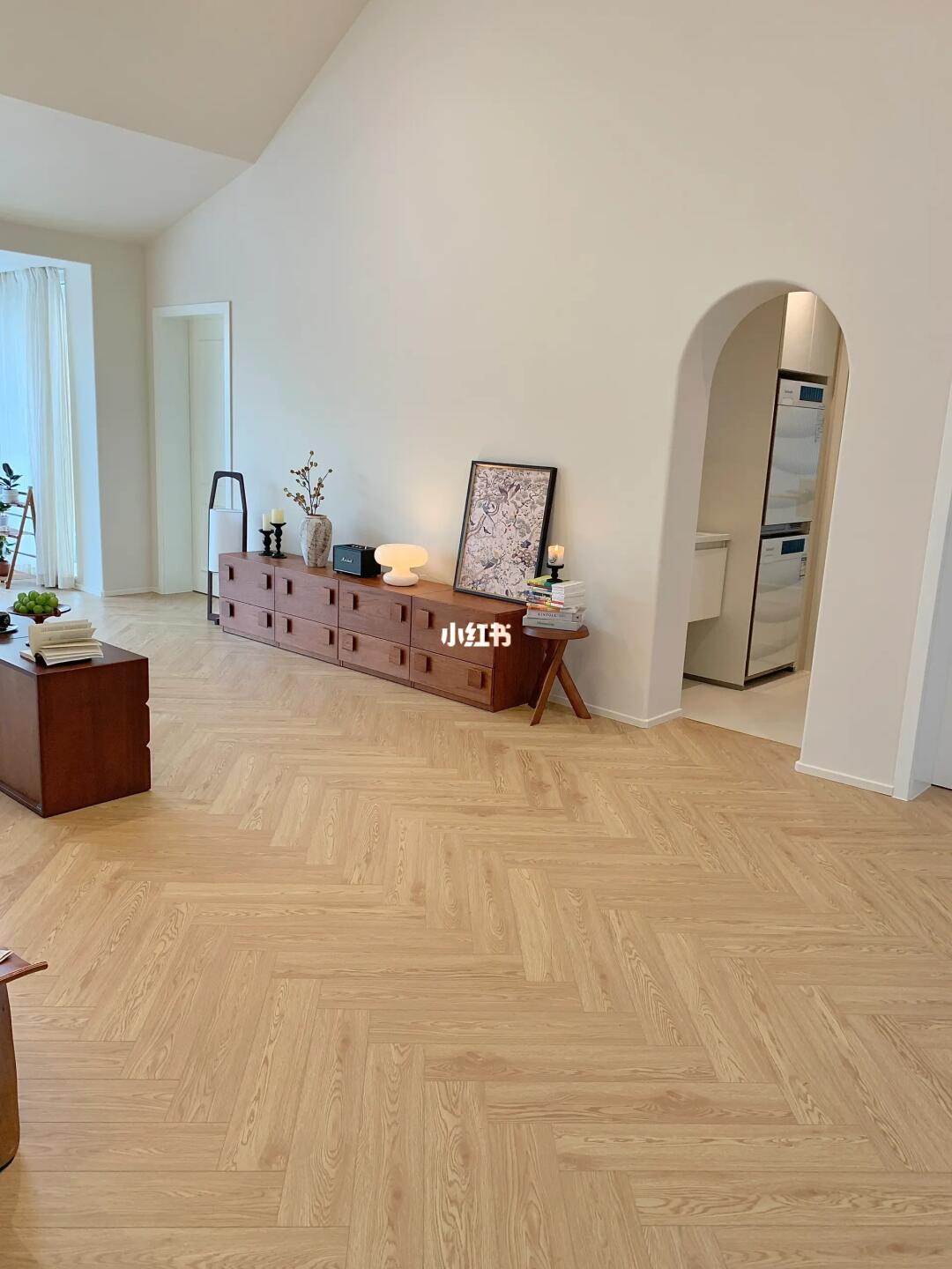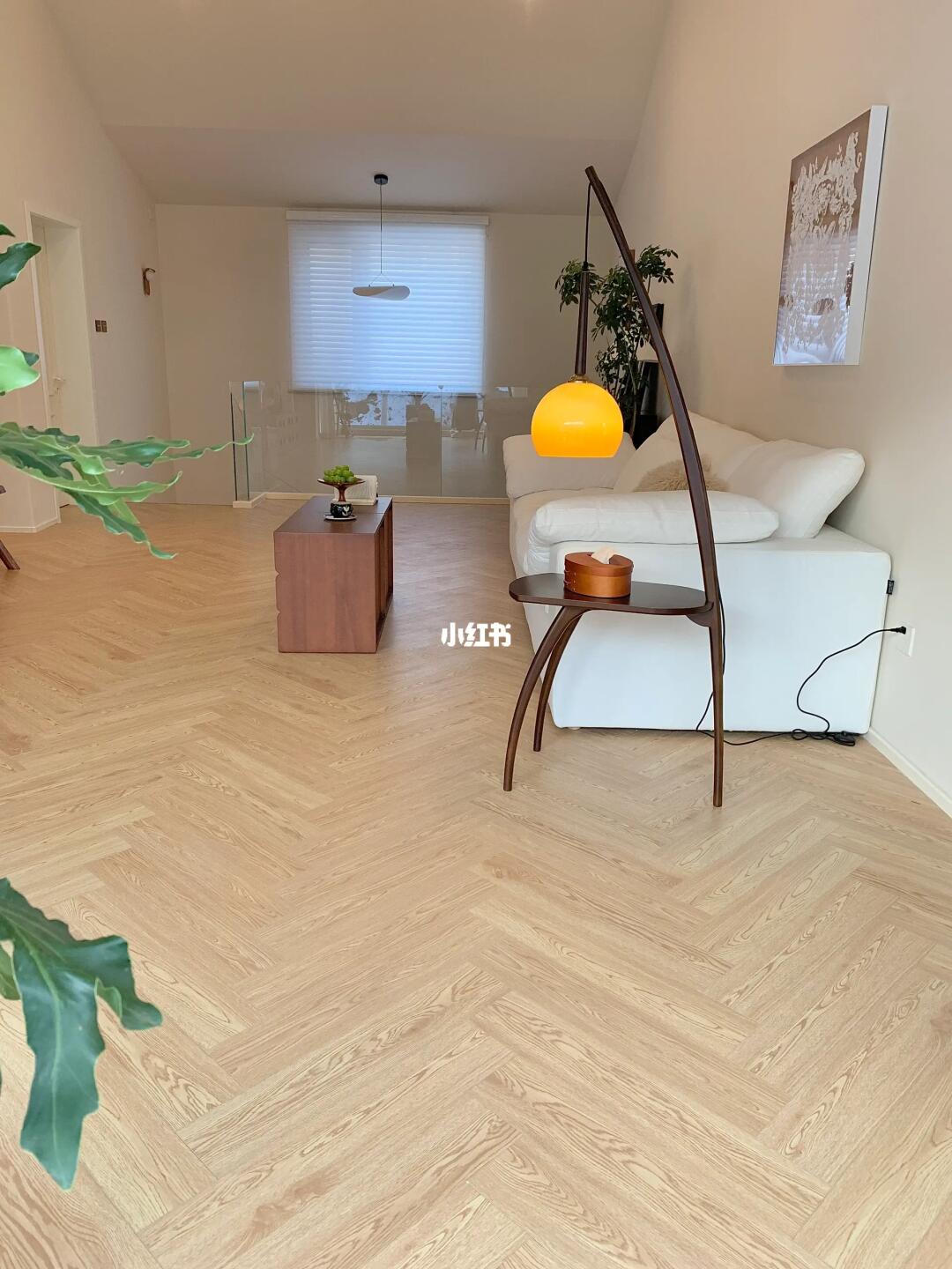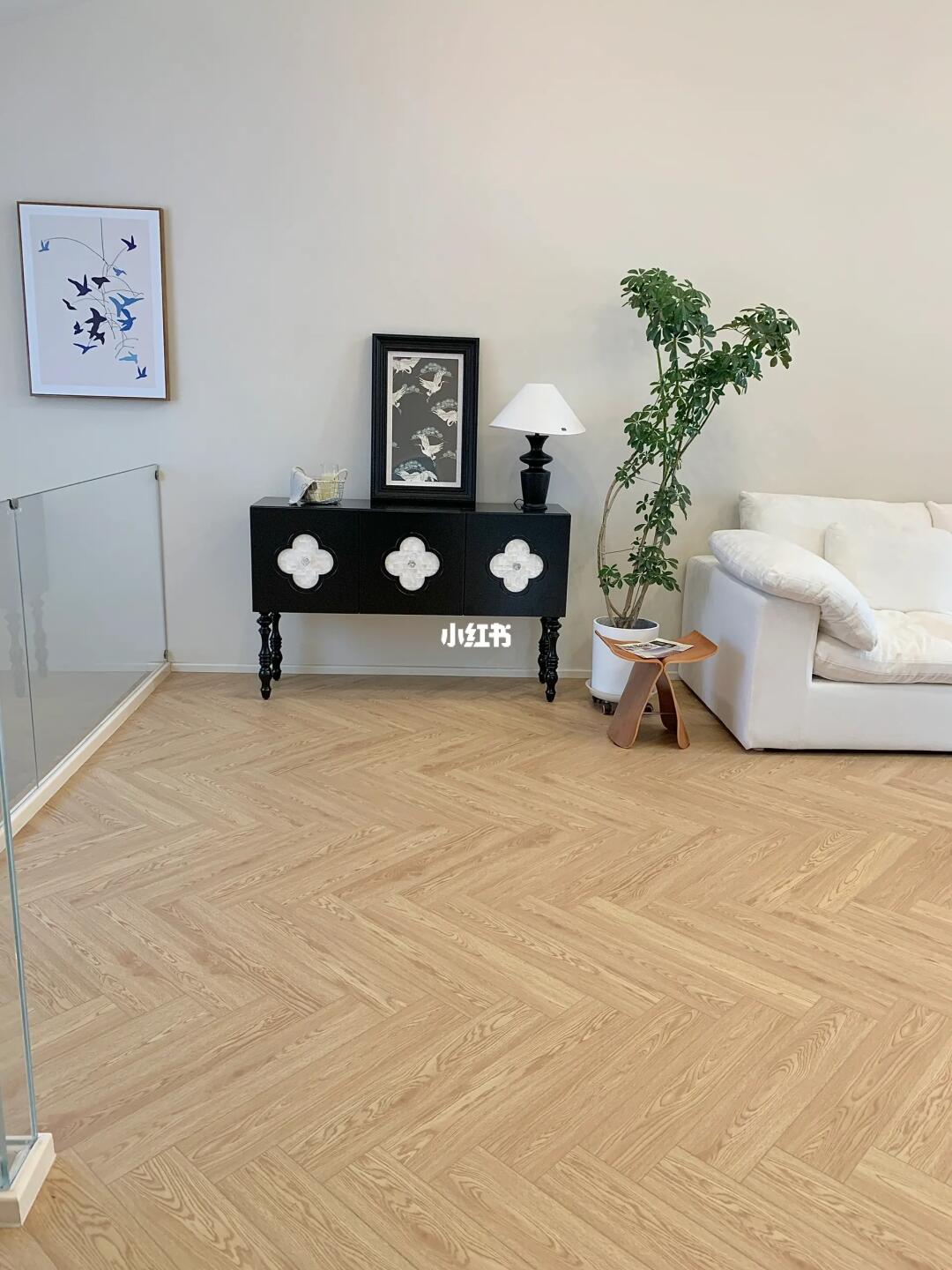 ✅质感、颜值不输木地板:新家是奶油中古风,硬装上我想要温暖的木色地面,所以选择了这款人字拼的石塑地板,铺好的效果真的很惊喜了,搭配软装也显得很有质感!