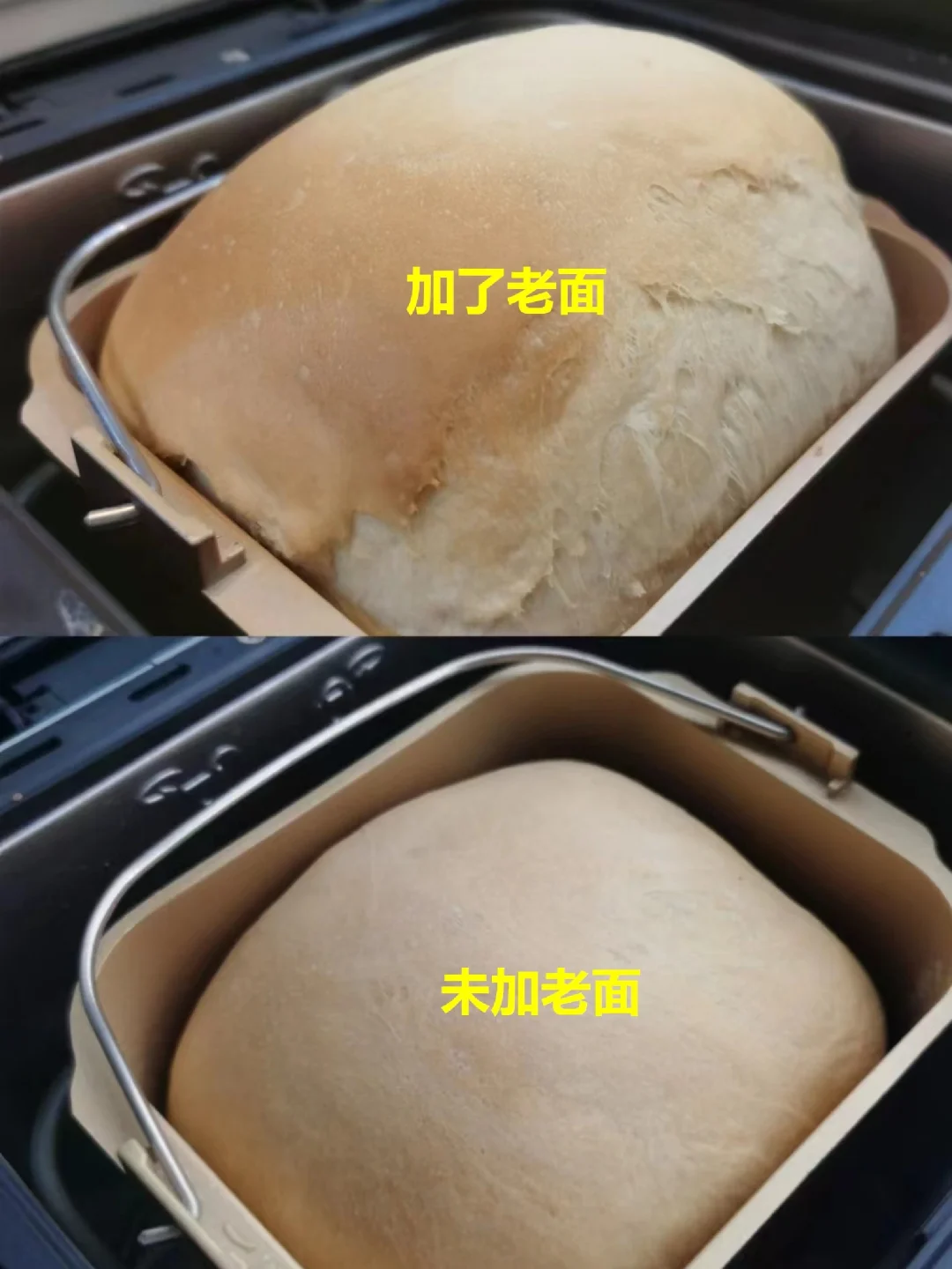 推荐老面法,只需在原配方里加一团老面。图示是我用柏翠面包机的一键式菜单“和风面包”做的,用的是500克配方。为了给姐妹们看一下对比效果,分别做了加老面和不加老面的两个吐司,见最后两图。加了老面的那个居然在1000克的面包桶里顶到了天花板,比不加老面的高了很多,其实也就多了30克面粉。