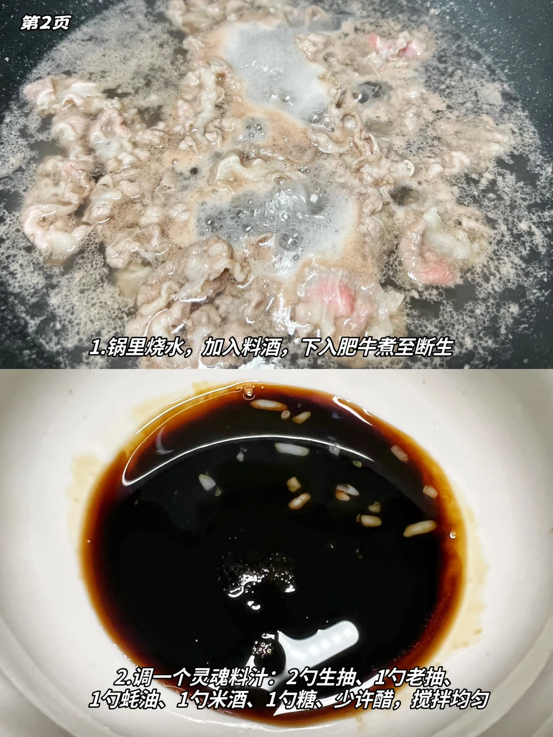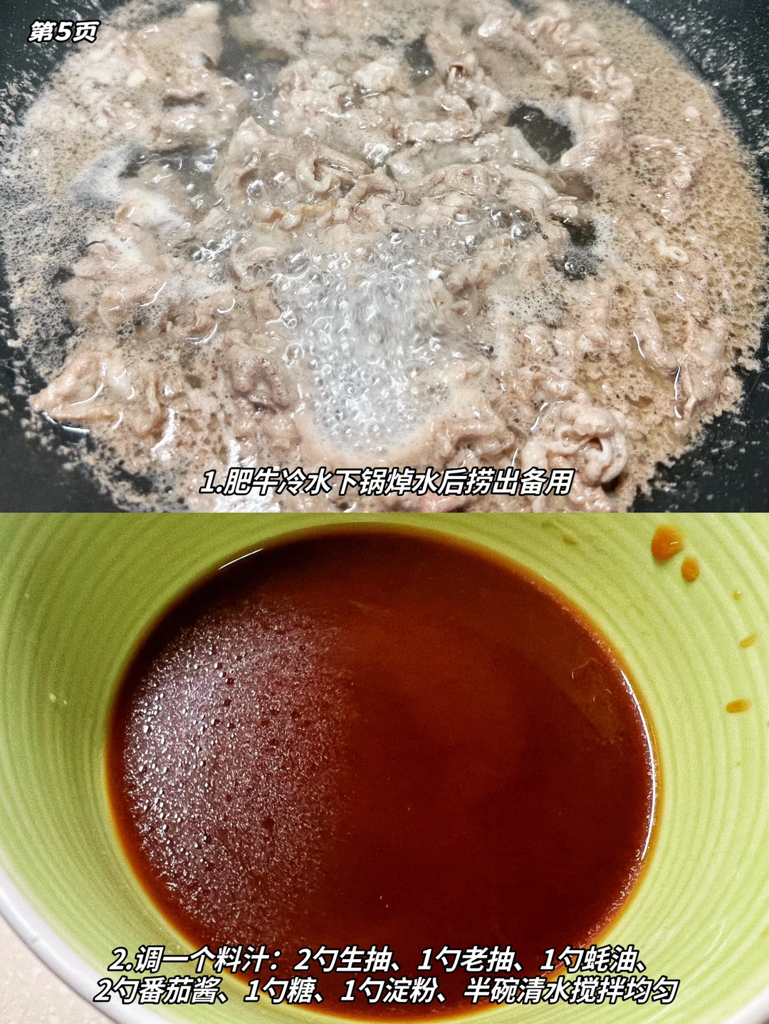 1.肥牛冷水下锅焯水后捞出备用
