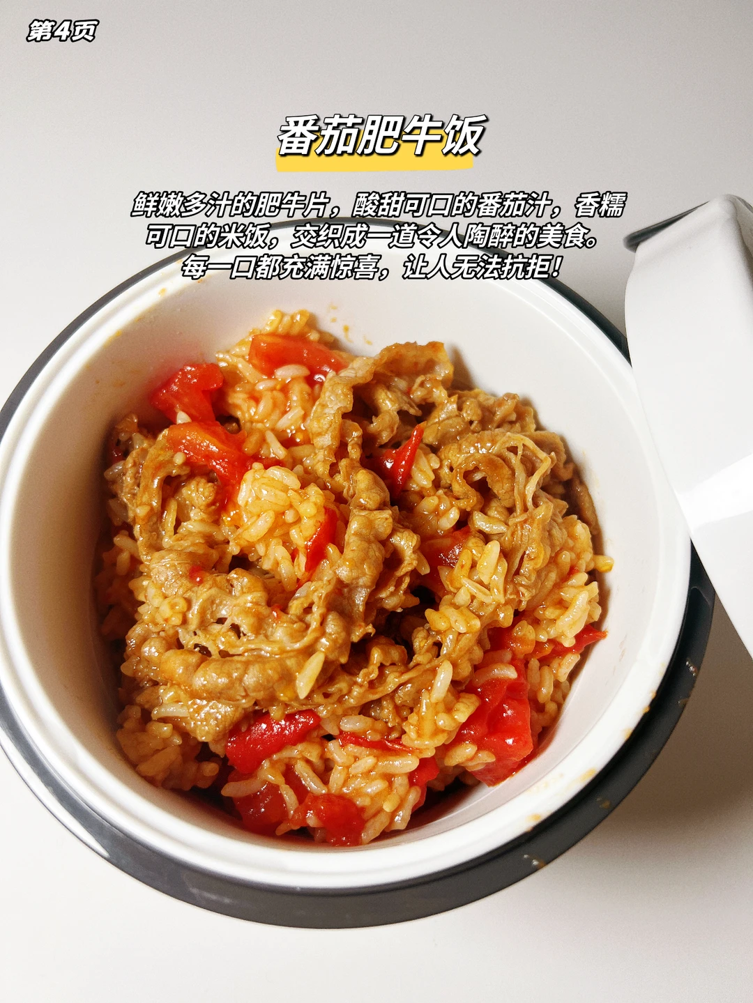 鲜嫩多汁的肥牛片,酸甜可口的番茄汁,香糯可口的米饭,交织成一道令人陶醉的美食。每一口都充满惊喜,让人无法抗拒!