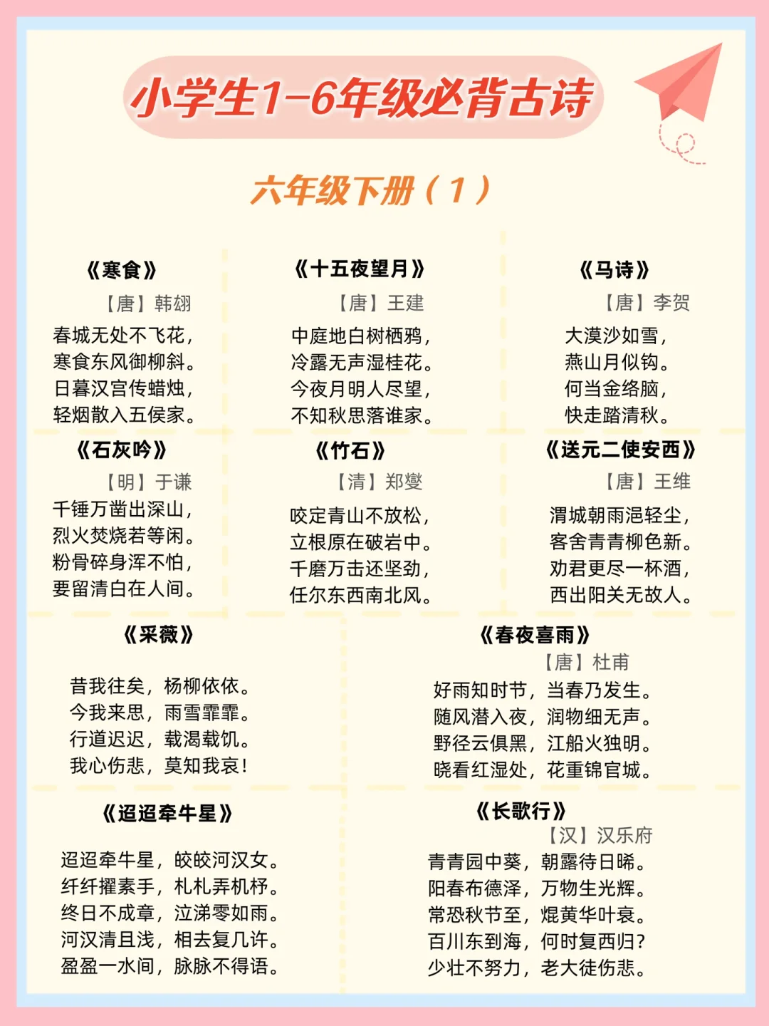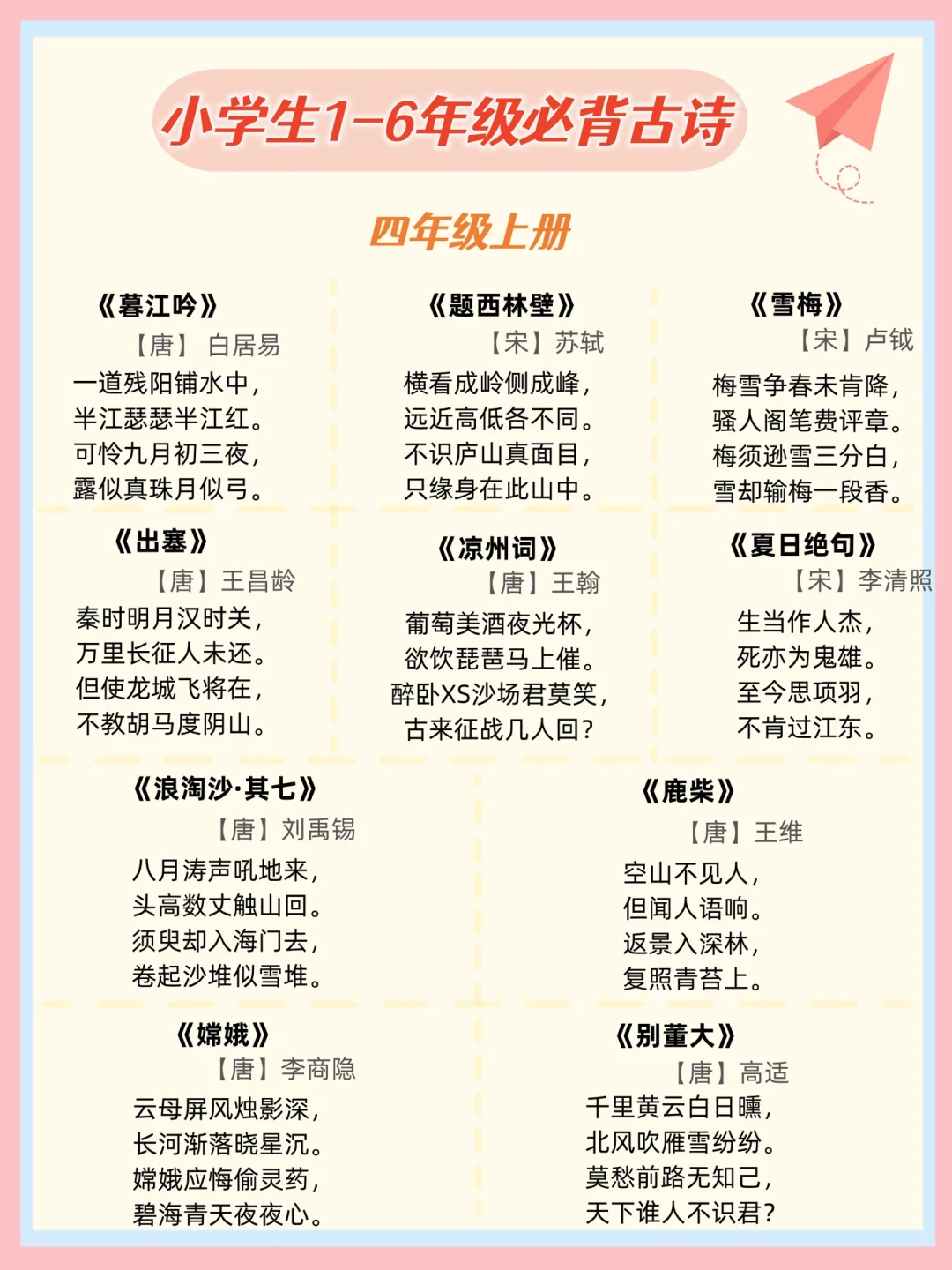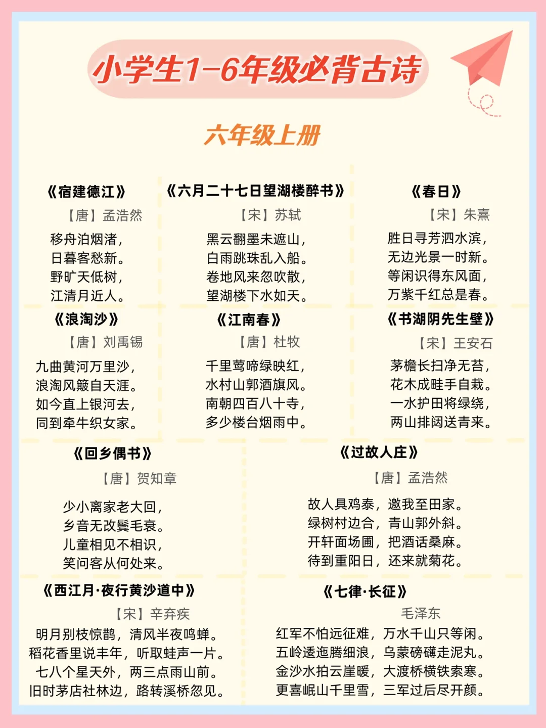 史上最全❗️1-6年级所有古诗,收藏起来先背✅