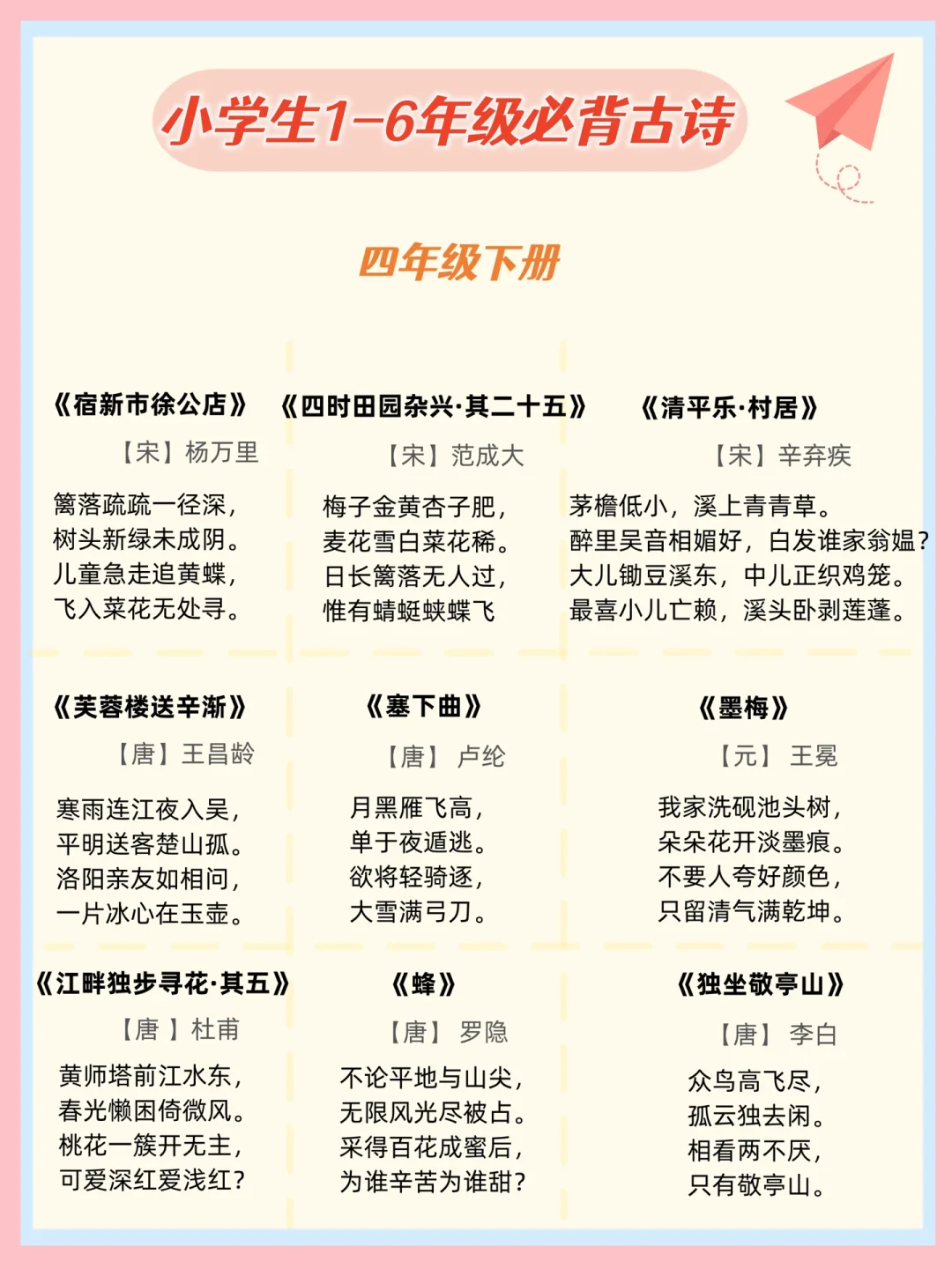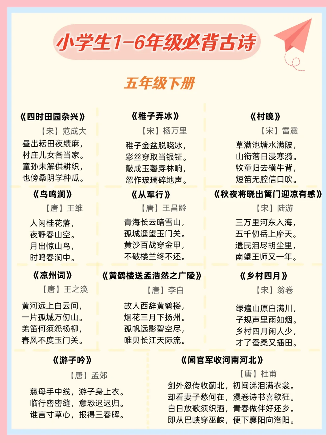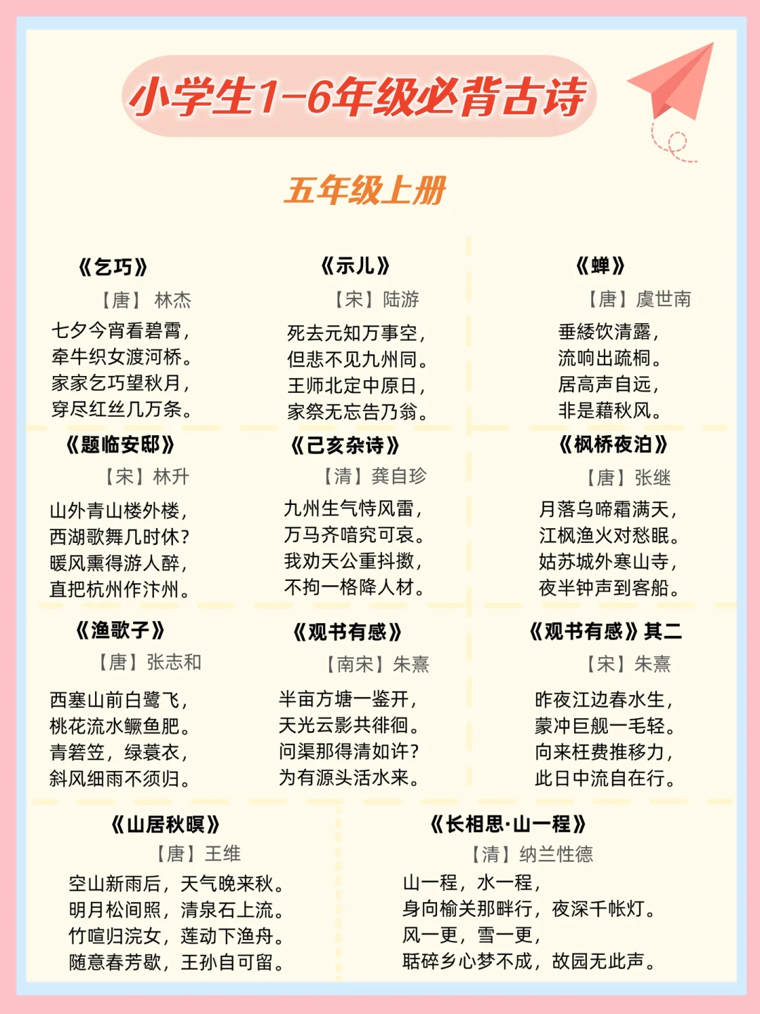 史上最全❗️1-6年级所有古诗,收藏起来先背✅