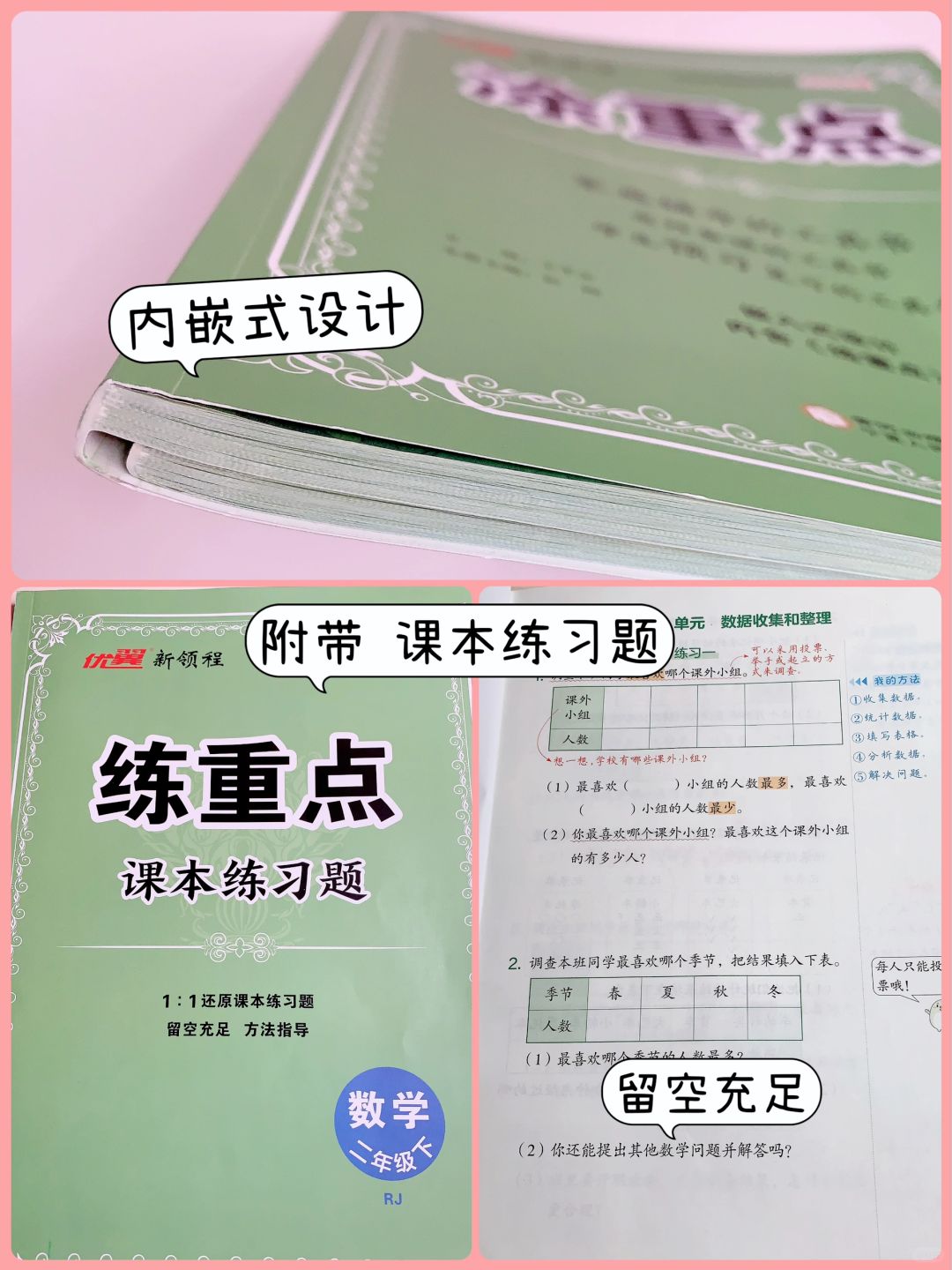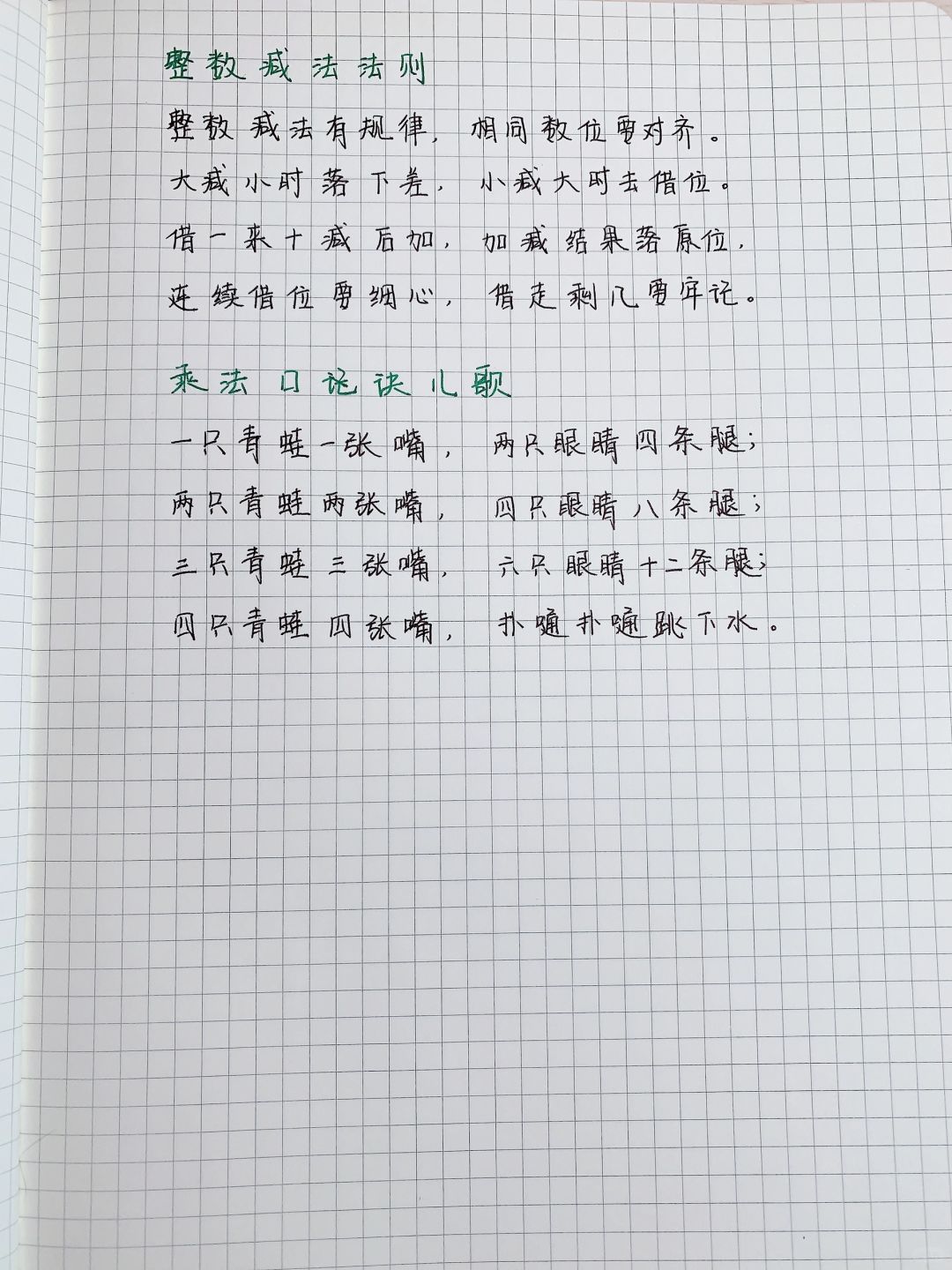 家有二年级小学生,今天整理了1-2年级数学知识点儿歌,在假期里给孩子复习和预习。儿歌跟顺口溜一样,让孩子更好的理解数学,学起来更简单轻松! 凡事就是预则立,不预则废 提前预习,肯定是学习增加效率的一个手段! 一个学期快结束了,为了更好的辅导孩子学习,我最近购买了下学期数学预习工具—【涂重点】 [种草R]内容和教材同步,是以笔记的形式在课本上进行标注和解析,解题前有方法提示、漫画指导。学完一个知识点还有归纳总结、素养提升。遇到不懂的可以扫🐎听讲解。 有引导有练习有延伸,用一学一练的方式帮助孩子理清知识点,锻炼孩子自己预习的能力,辅导孩子时我也会很轻松! [种草R]最让我喜欢的是: “大单元内容整合”—将之前学过的和未来要学的相关章节都列出来,让孩子整体感知单元知识框架,培养结构化思维 [种草R]书内还嵌有一本1:1还原教材课后习题 但是比课本的空间更大,学完一个知识点及时练习查漏补缺。我们比较重视课后练习题的再次练习, 有了这本练习册方便我们再次使用。 我在给孩子辅导时可能会忘记如何表述更为准确、孩子更容易理解。这本书整体来说还是很适合孩子预习或者家长辅导用。 在陪娃学习的过程中,我也是在不断尝试和改变的,长路漫漫,一起努力[派对R]