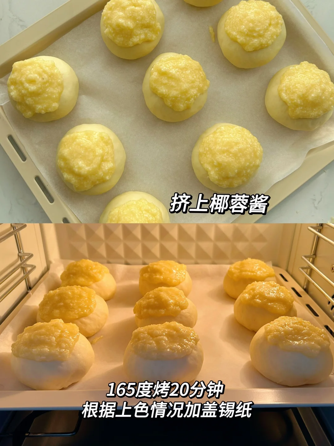 5️⃣放入预热好的烤箱上下火165度烤20分钟,最后根据上色情况加盖锡纸。