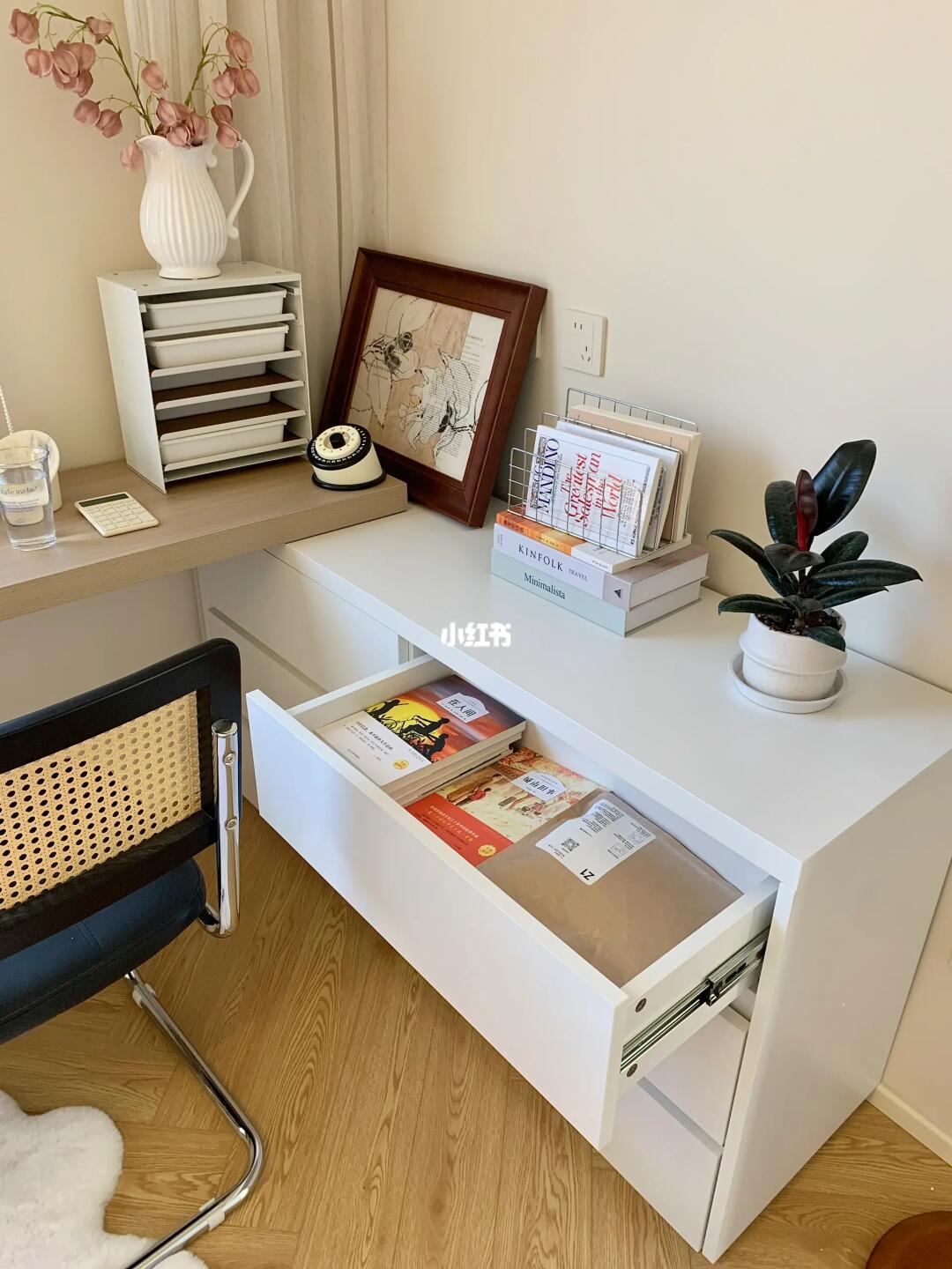 小房间只有10平米 用心布置一番却也有无限可能 放了一张1.5米的床架 剩余空间足够放下可伸缩的梳妆台 宽度只有40cm完全不占太多空间 六个大抽屉超级能装 奶白色颜值蛮高,关键是能灵活移动 满足我喜欢折腾布置的小小心愿啦~