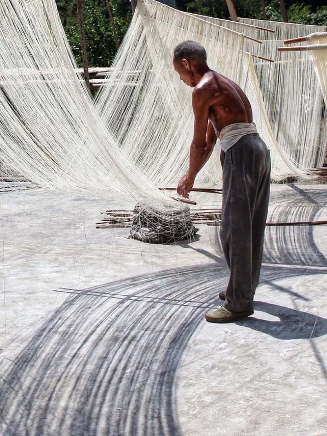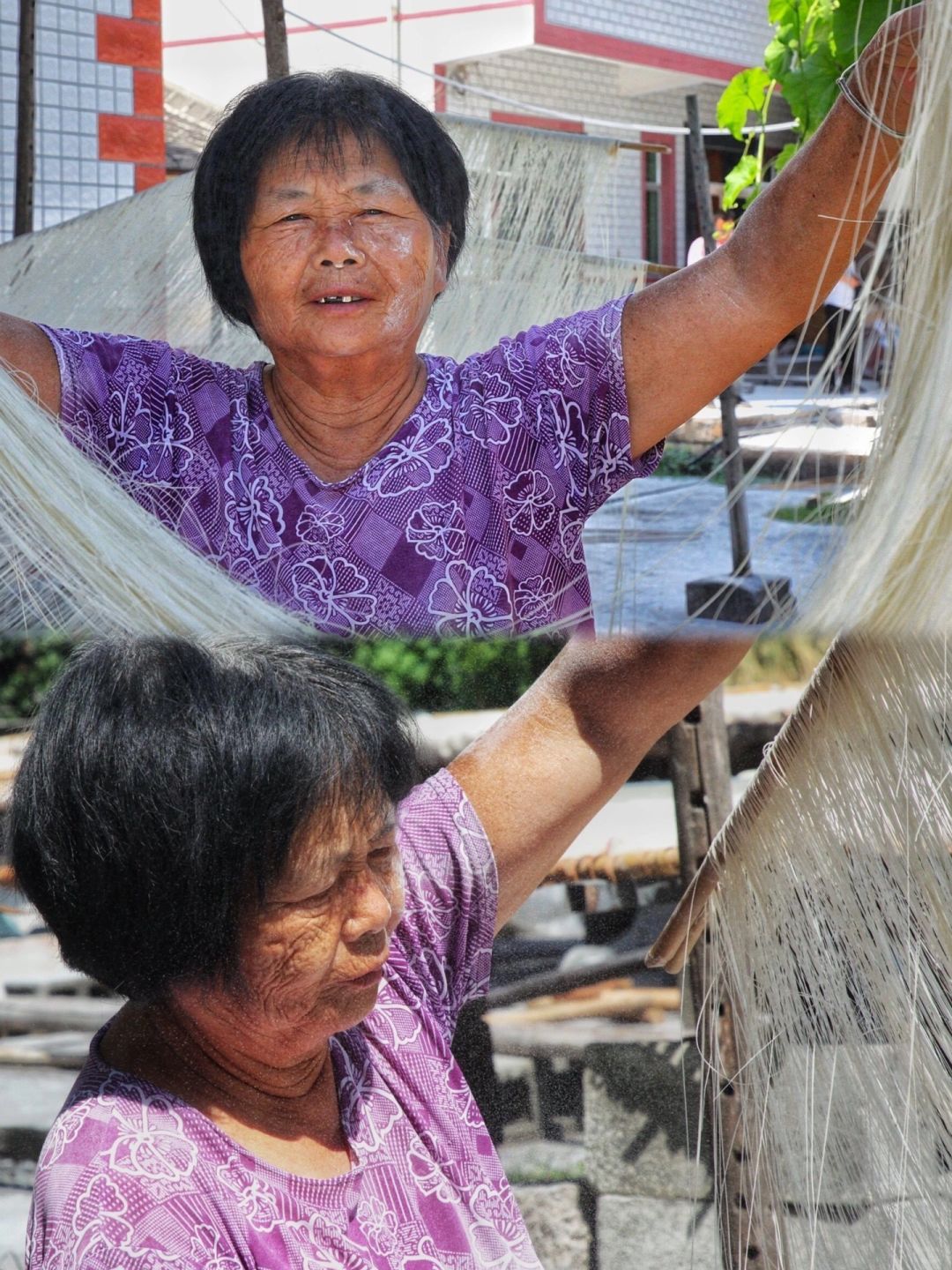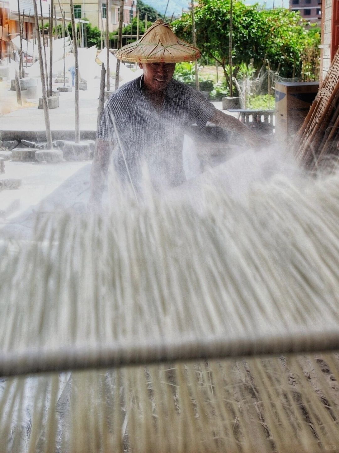 在福建,妈妈喊你回家吃线面 永春蓬壶镇,家家户户有着露天晒着的线面的民俗,在阳光下,如银丝,似细纱,像跳动的五线谱。