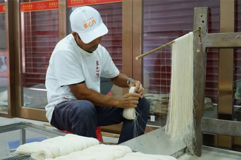 带你制作非遗手工面线❗️吃一碗史诗级古早味 🍜对于咱厝人来说,一碗宛如发丝的细白面线,贯穿了千年来闽南人的生活点滴。 不论是人生五喜还是接待贵宾,它都是必不可少的礼节。也是咱梧林必不可少的传统美食体验 - 🎋在被逐渐工厂化的社会,传统的手工面线制作的保留,显🉐️尤为珍贵❗️未来,梧林将带你体验面线的手工制作过程~ 👏需要经过十几道工序,8小时的手作,反复拉、弹,这样制作出来的面线口感更加劲道,易于消化,口感丰富,也很适🈴️给老人和小孩吃哦😇 📍坐标:晋江市新塘街道的梧林传统村落