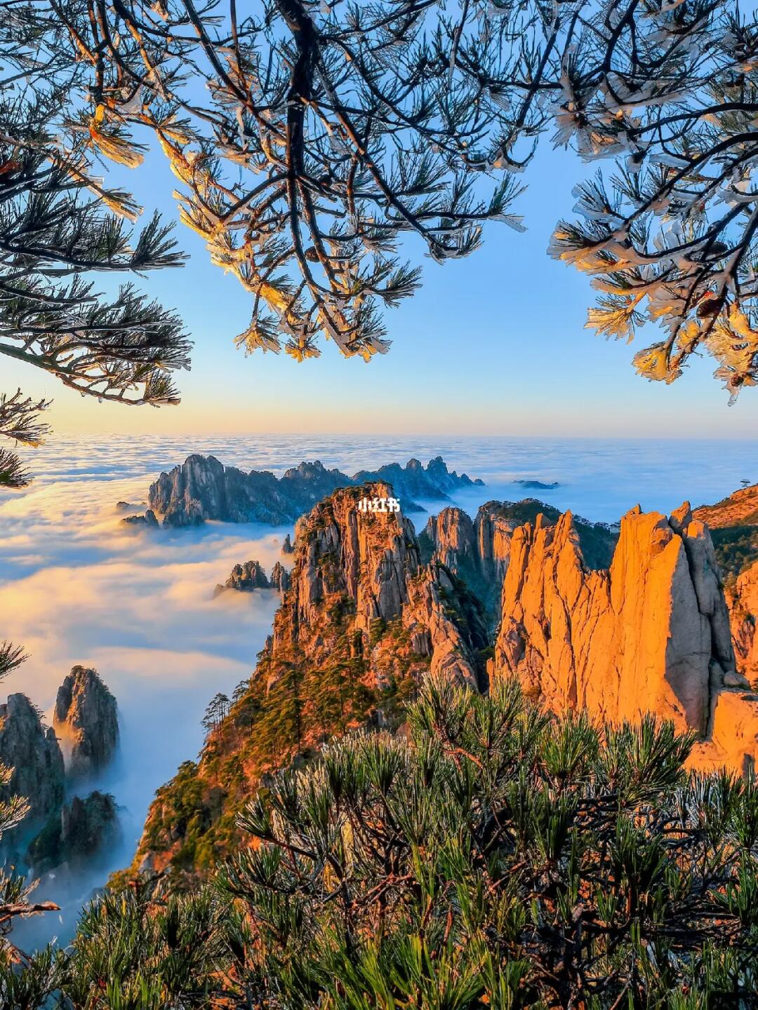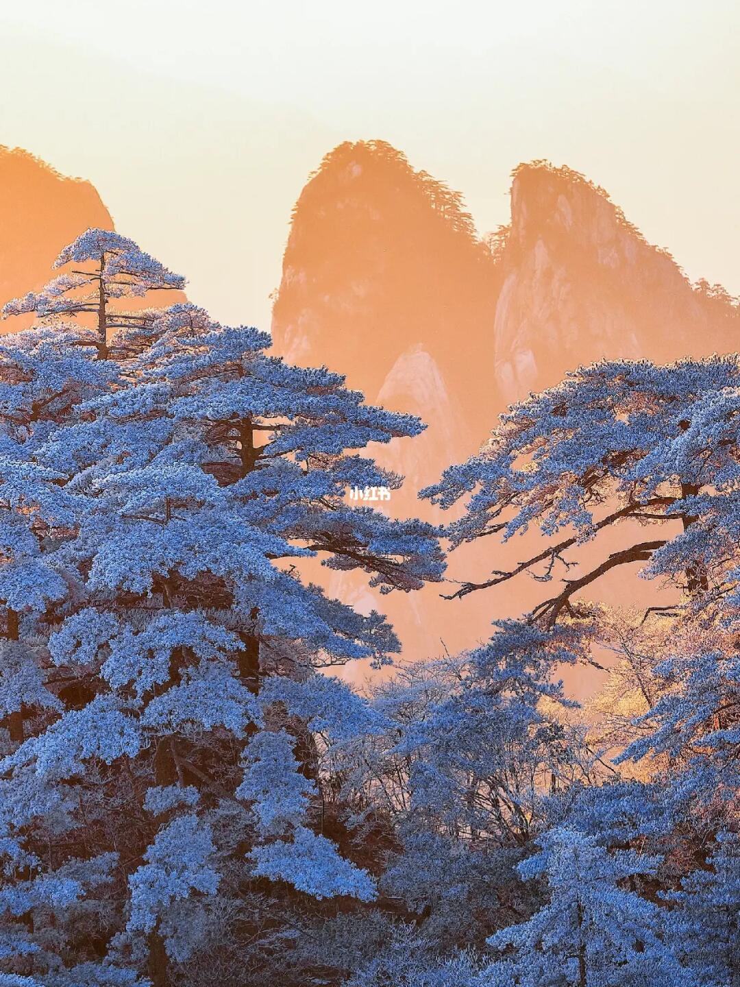 雪后的黄山等一场橘色日出