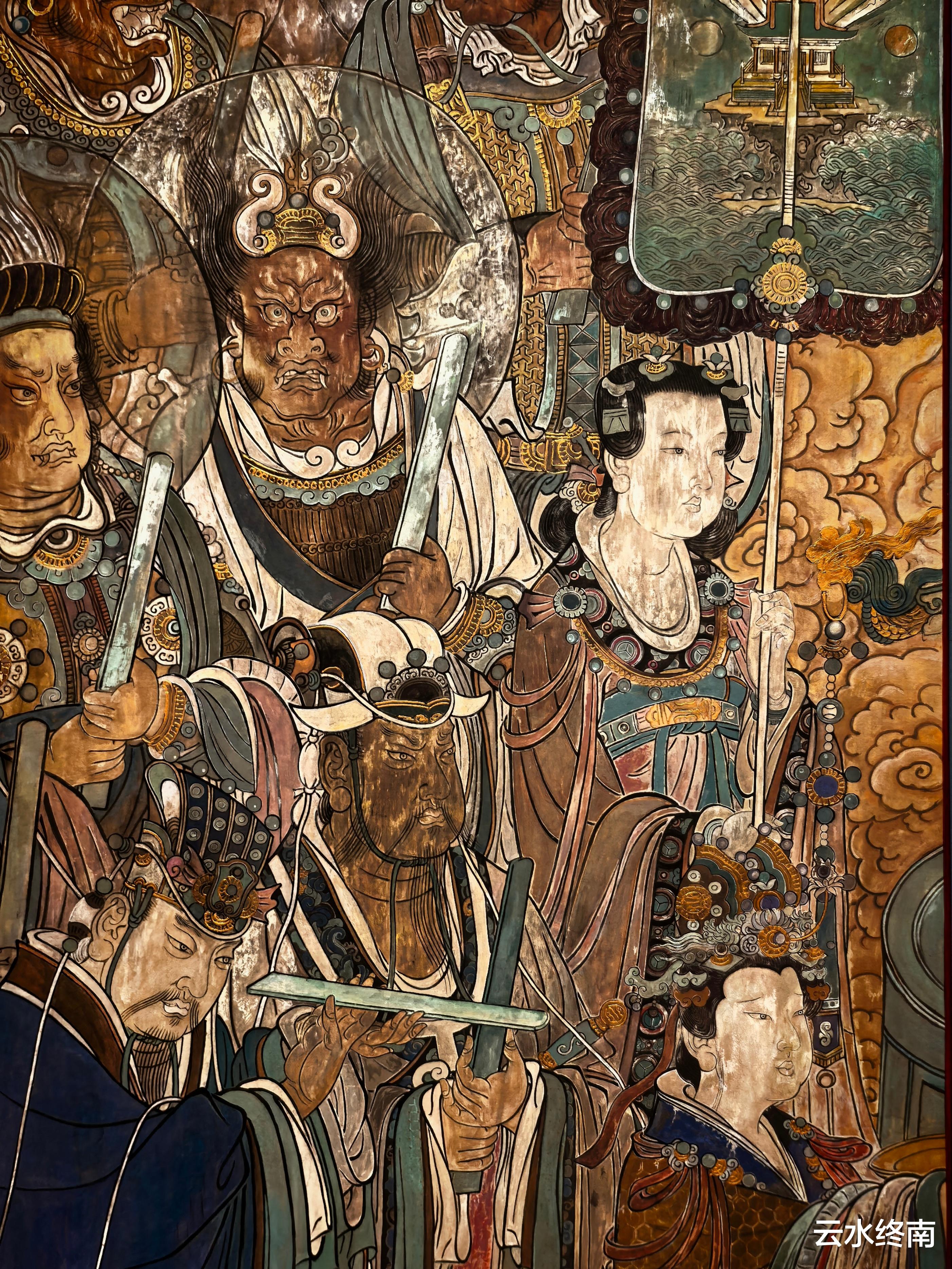 其中三清殿的《朝元图》,是世界绘画史上群像构图发展的顶峰,是世界罕见的巨制,堪称国宝。