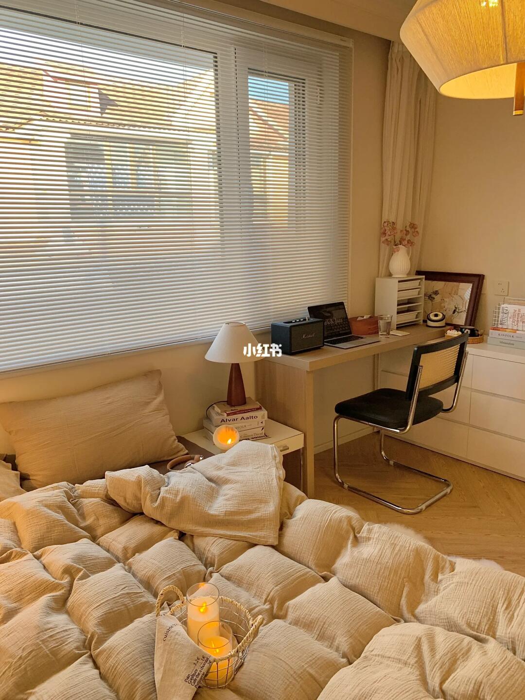 是我超爱的10平米小卧室 一张1.5米的实木床架 一个按自己喜欢布置的书桌 阳光顺着百叶帘的缝隙透进来 一切简单又美好~