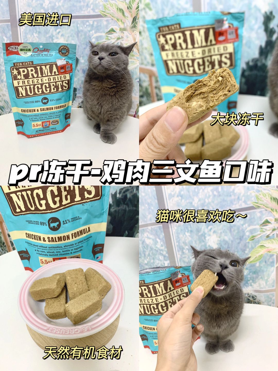 🥣pr冻干: 这次入手的是鸡肉三文鱼配方,pr有机小方砖,49%粗蛋白,26%粗脂肪,冻干中添加天然有机食材,不添加任何人工化学合成剂,高蛋白高脂肪含量适中,猫咪长肉不虚胖。 — 🥣自然魔法罐头: 肉含量高达96%,肉源来自新西兰有机牧场,一罐90g,完全满足猫咪食肉的天性,巅峰同厂生产,品质有保障,猫咪吃得放心!