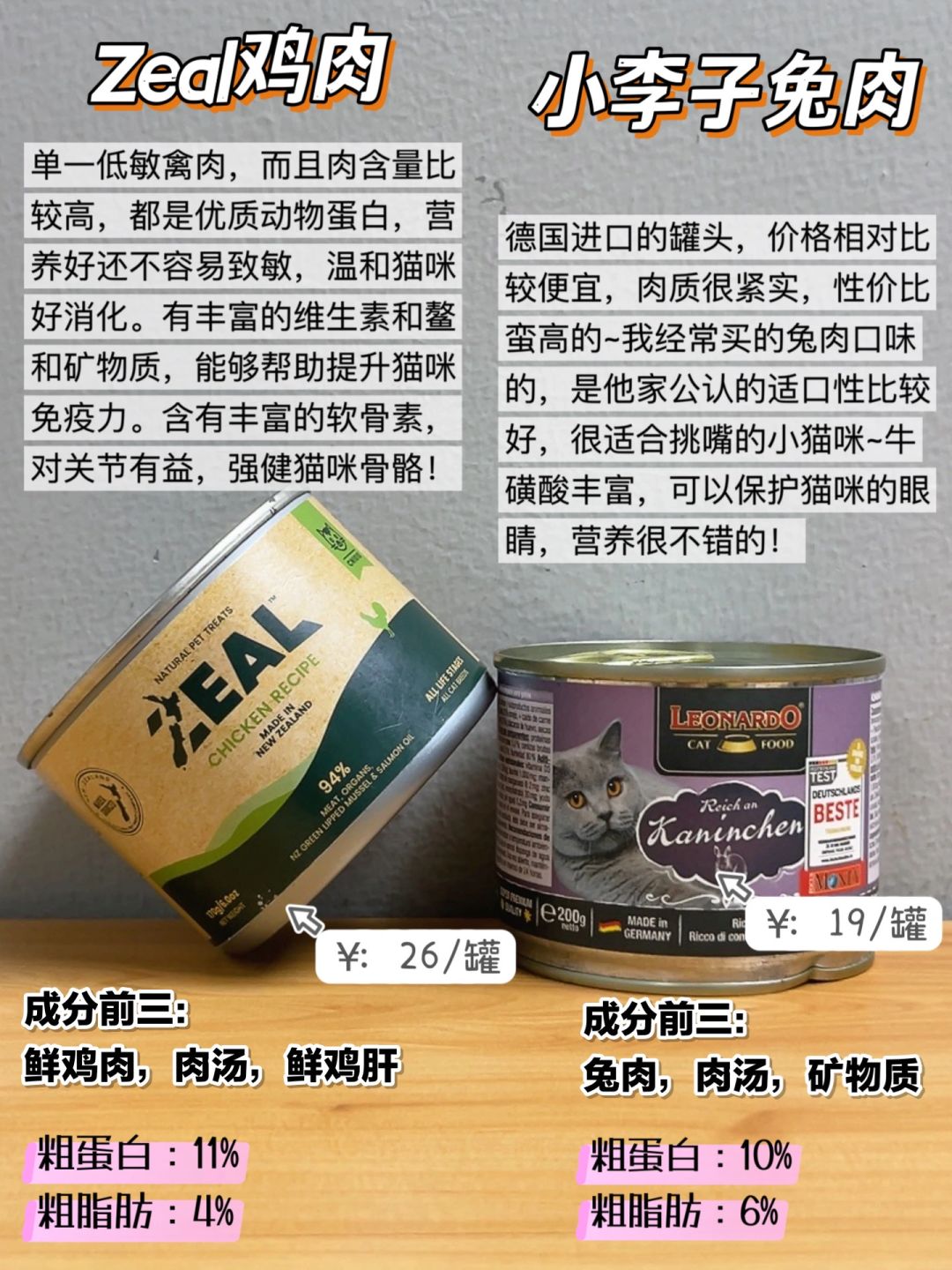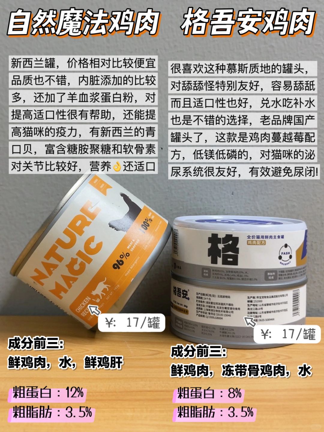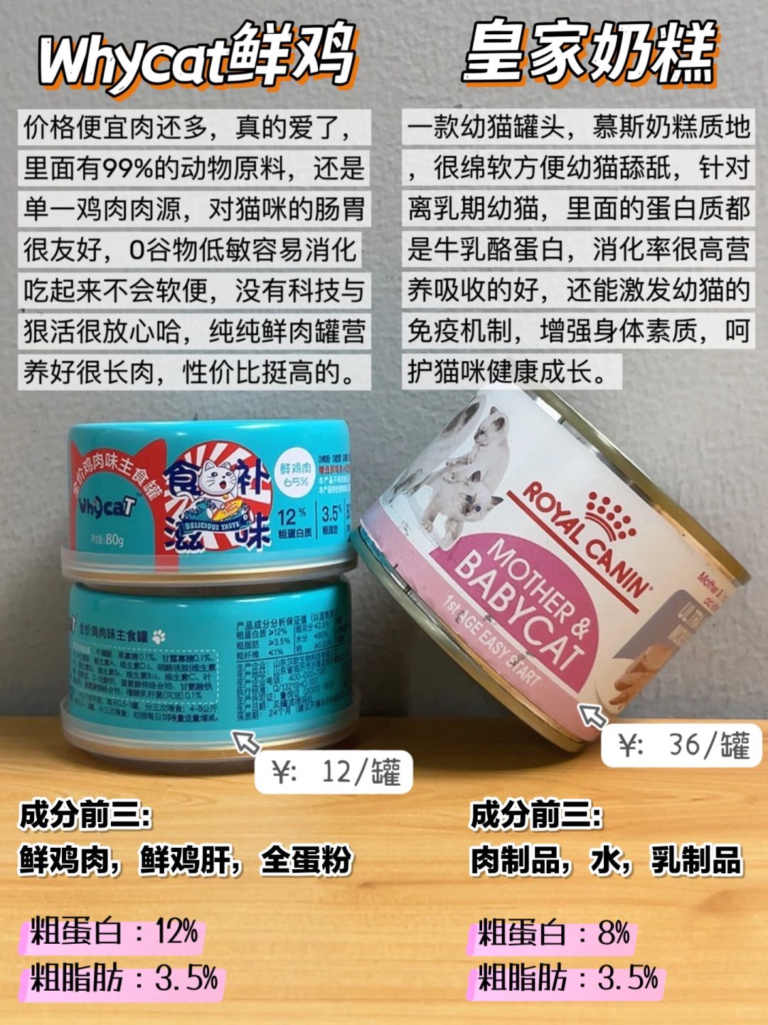 钱多别瞎买!这几个猫咪主食罐头能回购一辈 选主食猫罐头可不能瞎跟风买 还是要好好做功课的,不然真的很容易踩雷 我朋友都是资深养猫人了,虽然米不多但是很会选猫罐头 热门好用的都整理出来了,快来炒功课吧 Whycat猫罐头---长肉发腮 素力高猫罐头---补水美毛 Zeal猫罐头---营养壮骨 Mja猫罐头---长肉养胃 自然魔法猫罐头---壮骨适口 小李子猫罐头---营养适口 格吾安猫罐头---呵护泌尿 皇家猫罐头---助力发育