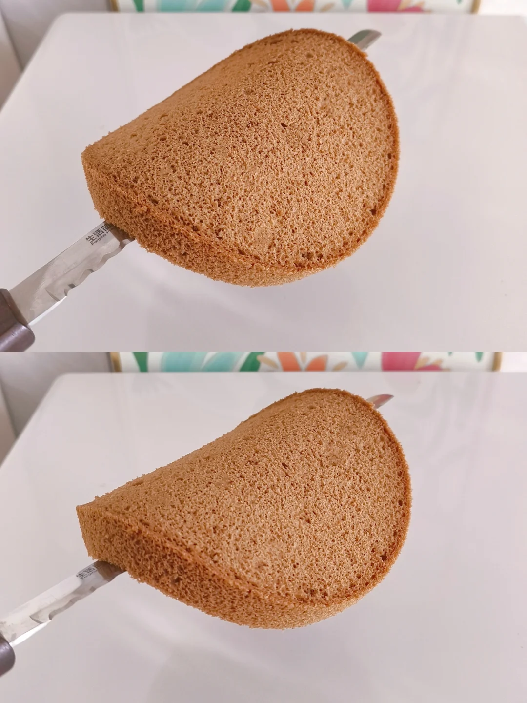 [彩虹R]鸡蛋3个(60-65克的鸡蛋),玉米油30克,牛奶45克,低筋粉45克,可可粉10克,糖35克,柠檬汁2克。