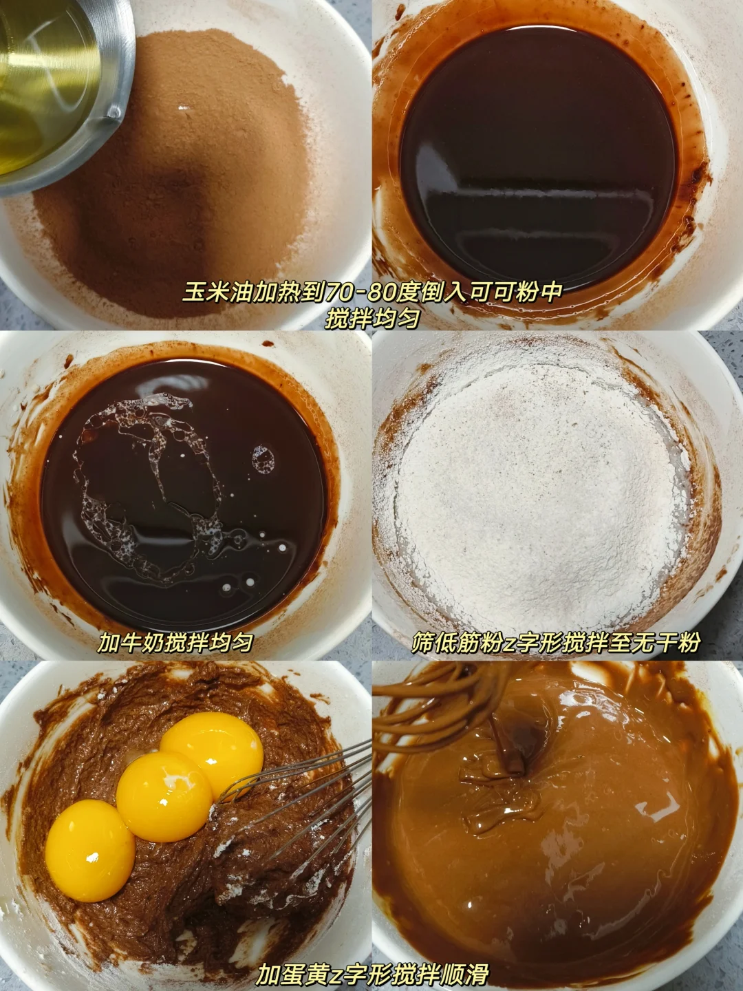 [一R]玉米油加热到70度,倒入可可粉搅拌均匀。