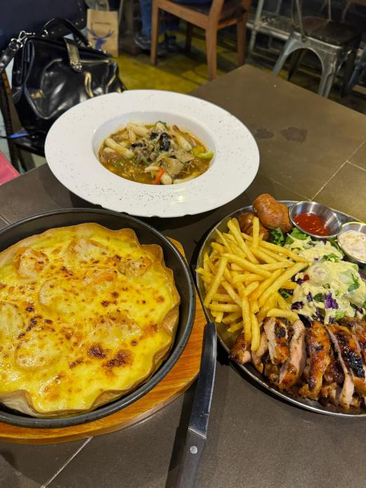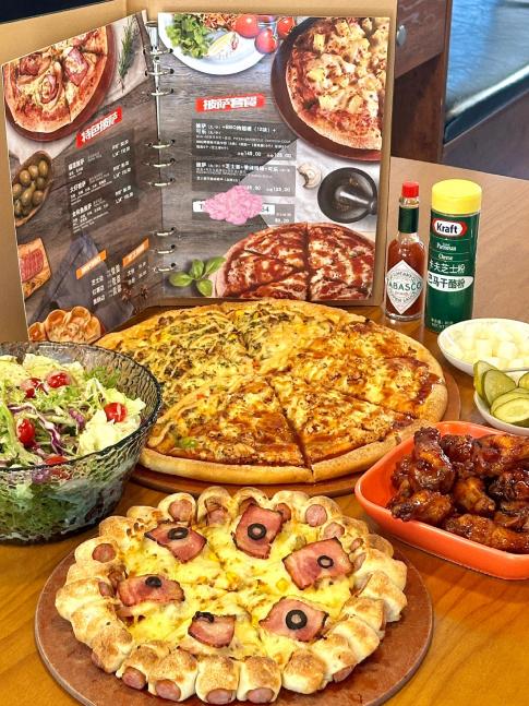 性价比超高的披萨店,用料实在分量足。经典夏威夷披萨果肉饱满,芝士拉丝绵长,饼底松软带点嚼劲;榴莲披萨榴莲味浓郁,甜香不腻。