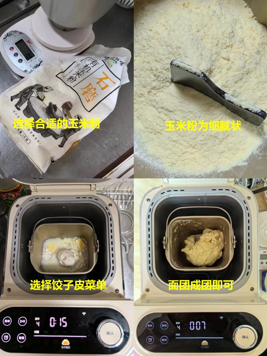 1. 玉米粉要选那种细腻的,不能是粗粒的,我用的是悦谷百味的有机玉米粉。