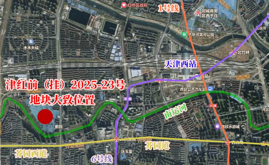 7月21日,天津市规划和自然资源局官网发布公告,津红前(挂)2025-23号挂牌出让。该地块位于红桥区前园道与咸阳路交口