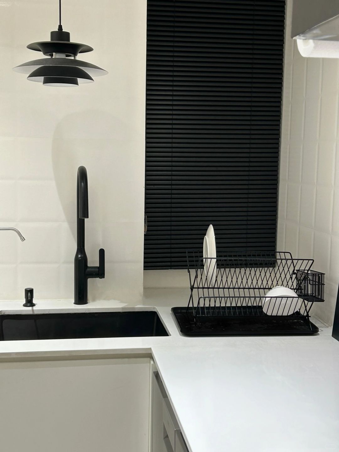 ▪️没做吊柜,做了L型地柜,但高柜和餐边柜的收纳却比吊柜还要实用许多。 ▪️总体预算不超1w5 ▫️吊顶没有做铝的那种,因为是开放式,跟客厅连在一起做了木工吊顶,厨房做了防潮板。 ▫️地面瓷砖跟客厅通铺了木纹瓷砖600✖️600。 ▫️厨房墙用了白色的300✖️6000格子砖,耐看也很好清洁。 ▪️装修完1年啦,没有吊柜用起来真的很顺手,与其东西放在薄薄高高的吊柜,还不如都收进深度60的餐边柜以及地柜连接的高柜。 小户型的收纳问题在我家就不是问题~